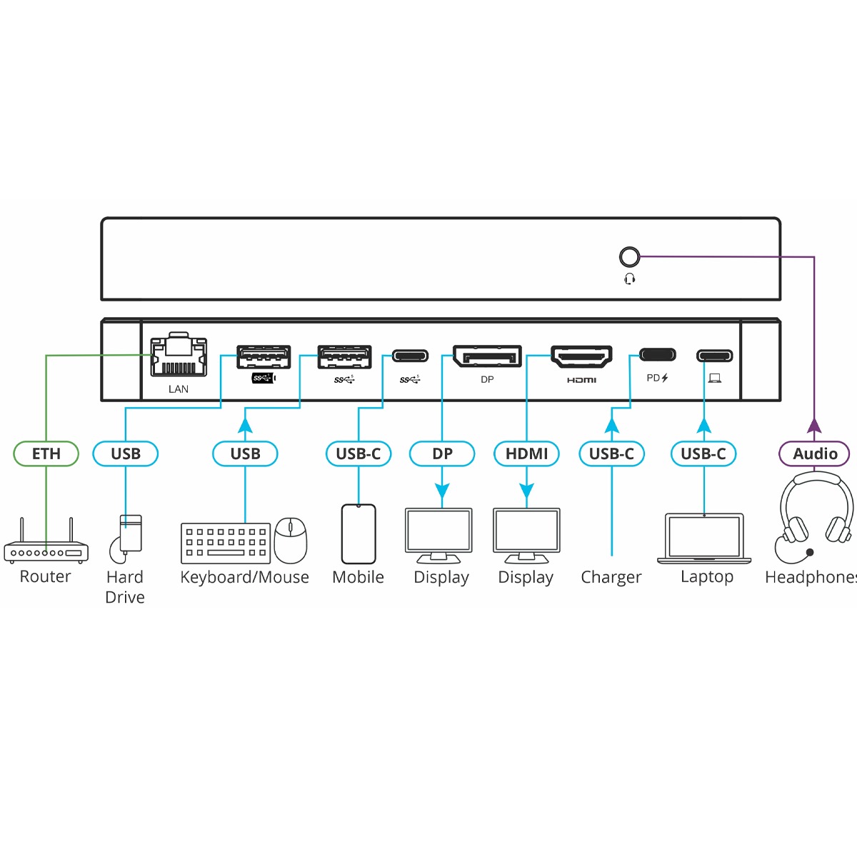 It supports the full USB C features: 4K@60 4:4:4 Video, 10G data in parallel to USB 2.0 and 60W power.
