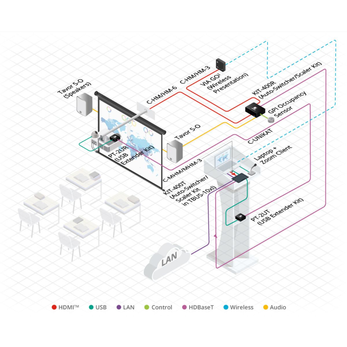 Kramer's C−HM/HM/A−D is a high−speed, high−performance HDMI with Ethernet cable that has a molded HDMI connector at one end and micro connector at the other. It supports resolutions up to 4K@60Hz (4:4:4) and multi−channel audio in a single cable.