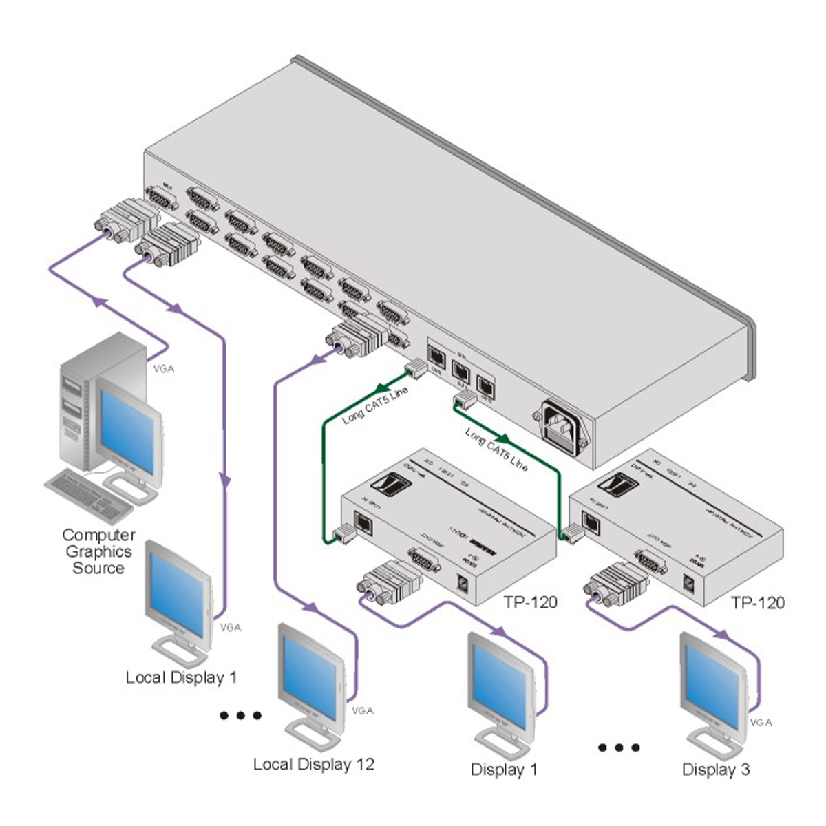 1:12 Computer Graphics Video & HDTV Distribution Amplifier with 3 Twisted Pair Transmitters