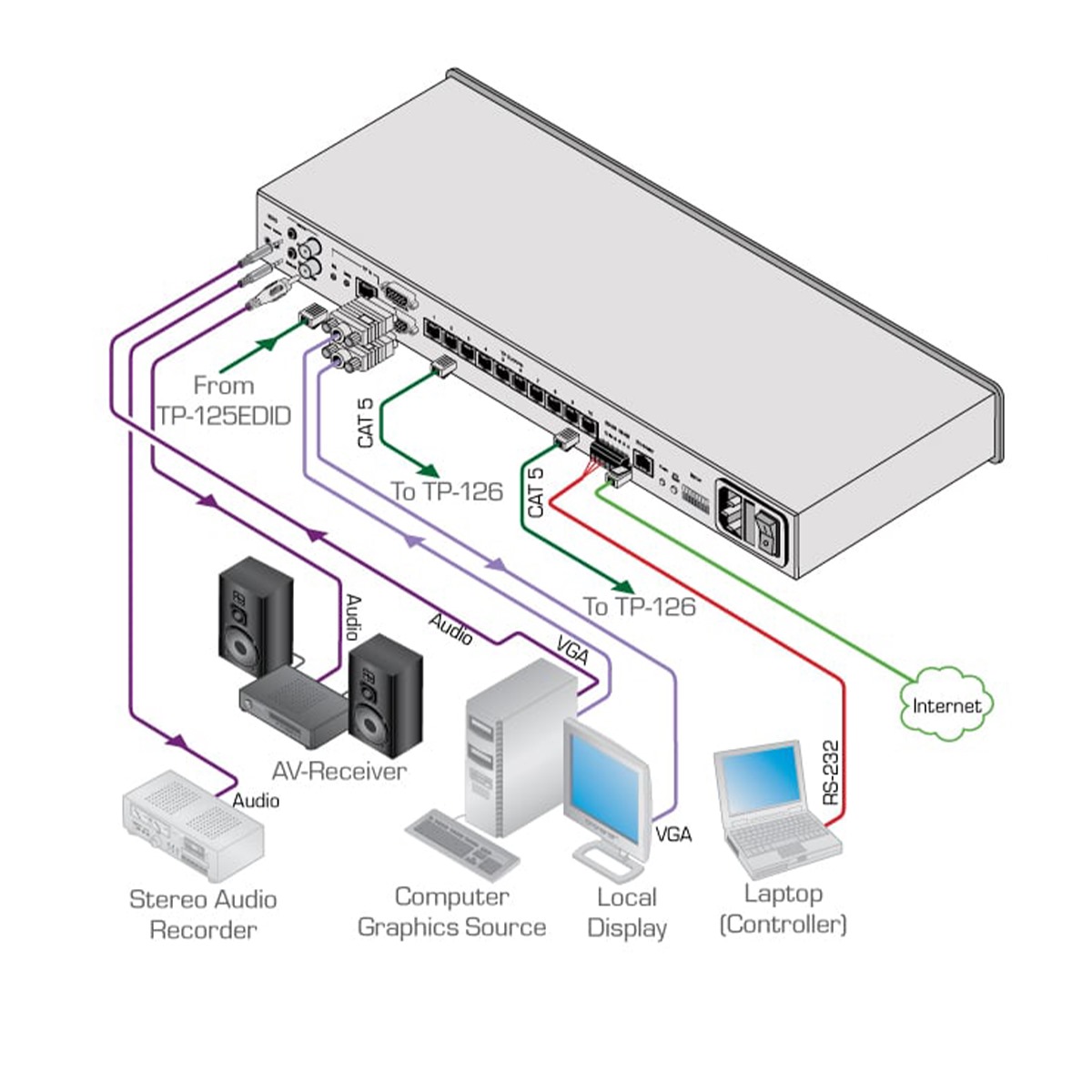 Sync Polarity Settings — H & V switches for improved HDTV compatibility with the CAT 5 outputs.