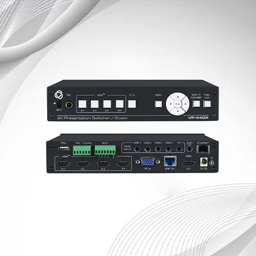Versatile and high-performance video scalers with several analog and digital inputs. For the best display quality, scale up or down to different output formats. Assure seamless device changeover and accurate image corrections. Perfect for professional AV systems, control rooms, and live events.