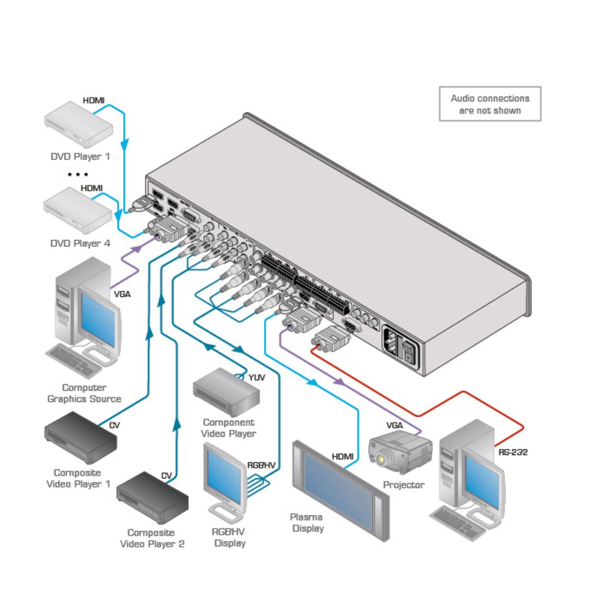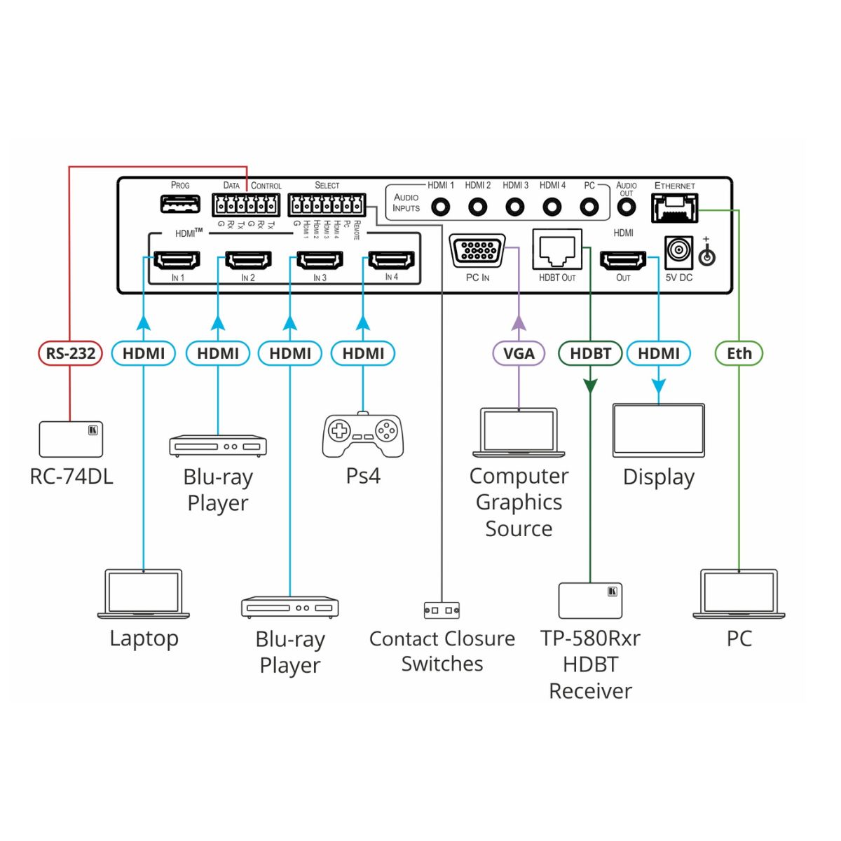 8–Input HDMI & HDBaseT ProScale Presentation Switcher/Scaler with 2K Support & Power Amplifier