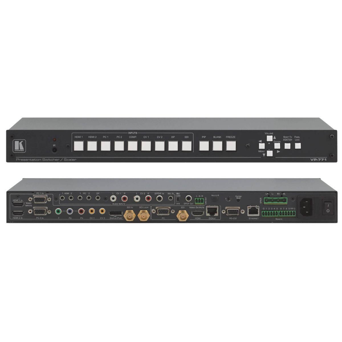 Kramer’s PixPerfect™ Scaling Technology — Kramer’s precision pixel mapping and high-quality scaling technology. High–quality 3:2 and 2:2 pull-down de-interlacing and full up — and down–scaling of all video input signals.