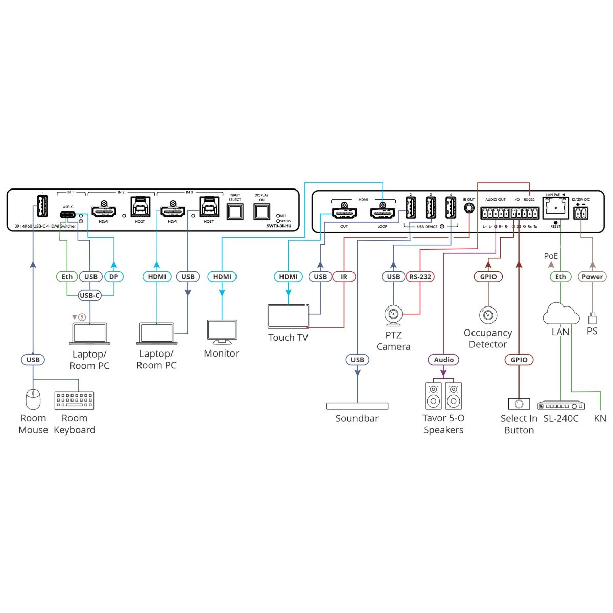 - 4K60 4:4:4 AV and USB 3.2 coupled–signals switching