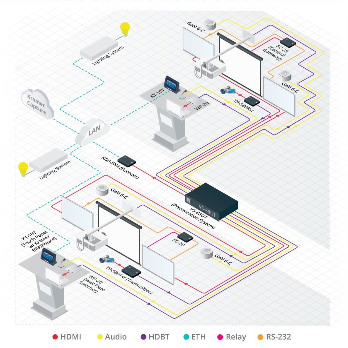 All–in–One Presentation System with 8x8 4K60 4:2:0 HDMI/HDBaseT 2.0 Matrix Switching, Master Room Controller, PoE & Power Amplifier