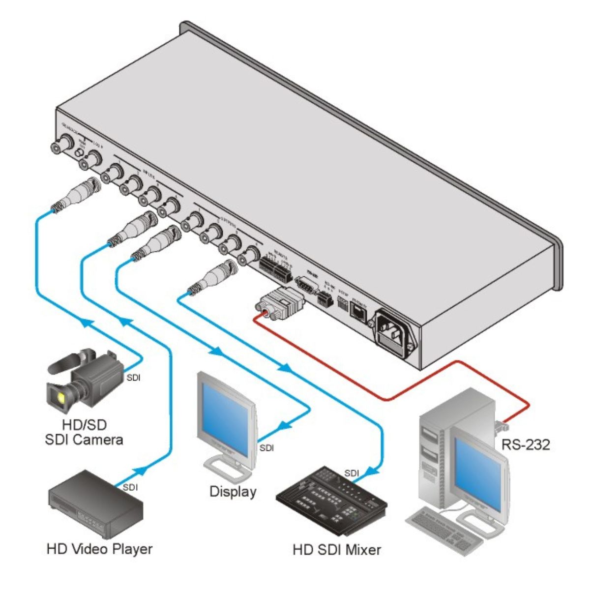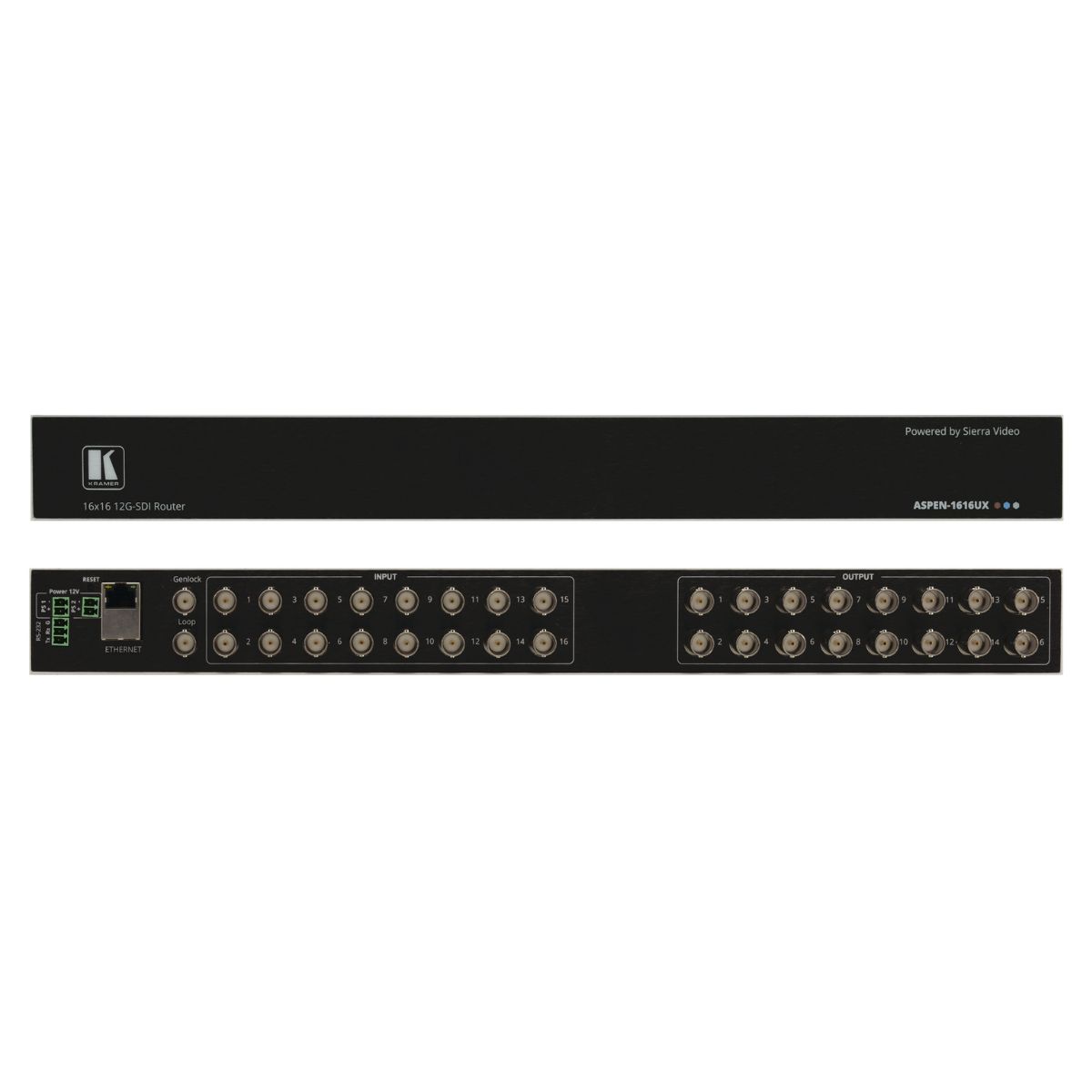 The Lassen HD XL Series offers flexibility and adaptability to any application where saving space and costs are important. 1616HDS−XL is a 16x16 HD−SDI (1.5G) & Analog Balanced Stereo Audio matrix switcher, available in a compact 2RU frame. 1616HDS−XL also supports breakaway stereo audio switching whereby the Digital Video, Audio Left, and Audio Right can all be routed independently. It offers control via the front panel or remotely via RS−232 or Ethernet.