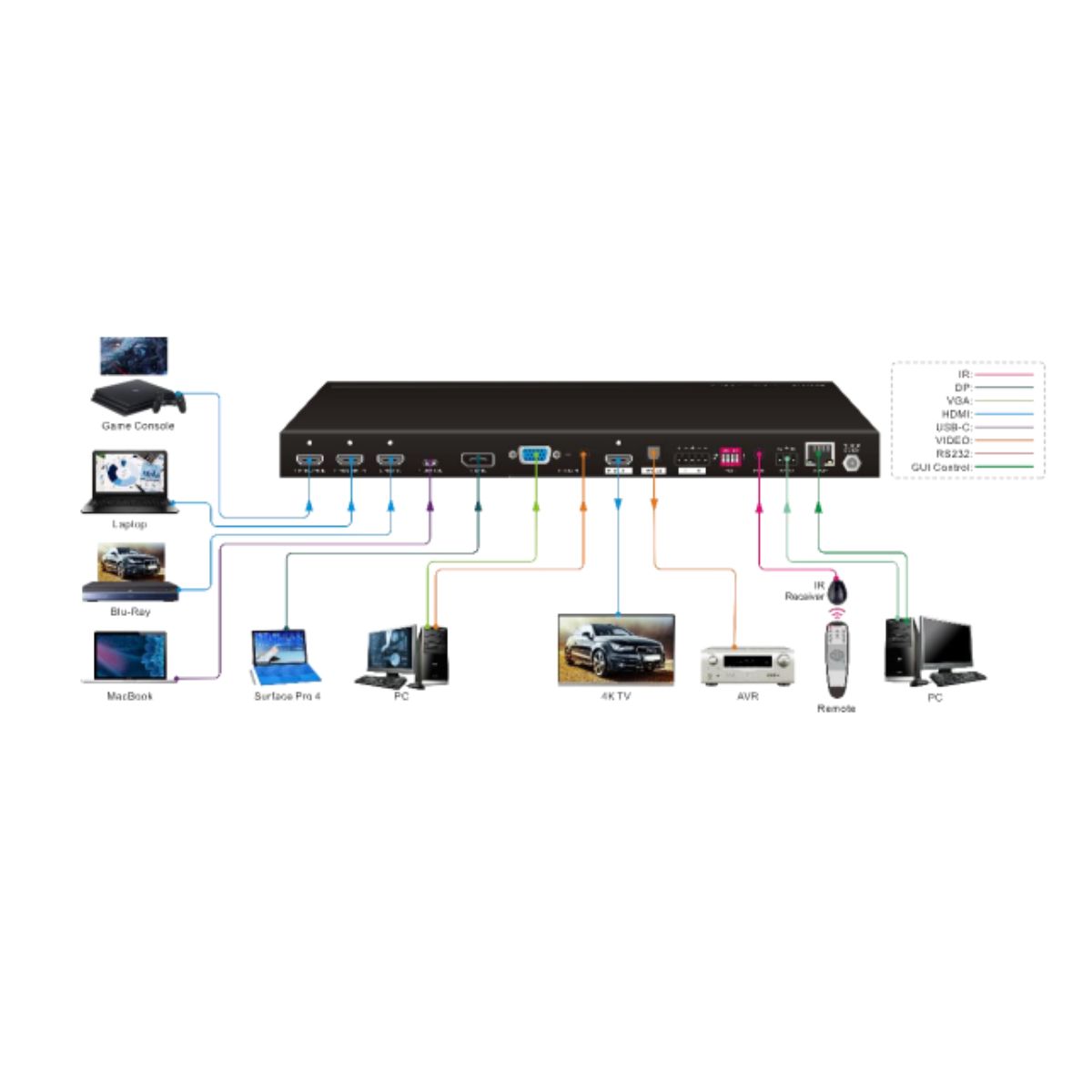 Supports RS232 pass-through to communicate control signals between the scaler and the connected HDBaseT matrix or receiver.