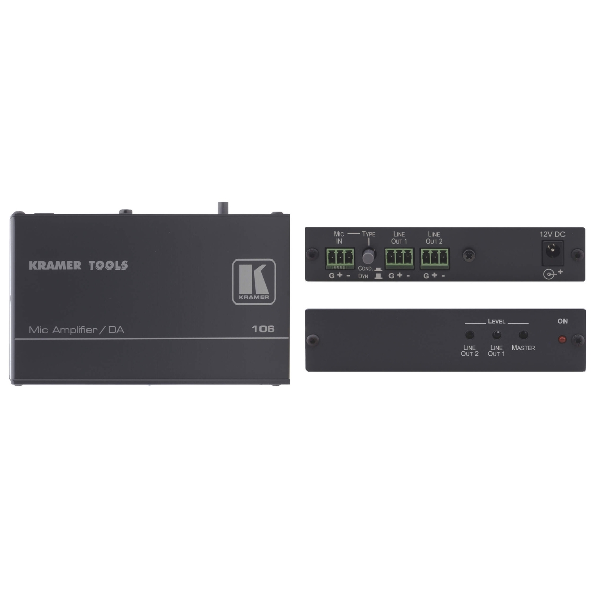 - Compact Kramer TOOLS™ — 3 units can be rack mounted side–by–side in a 1U rack space with the recommended rack adapter.