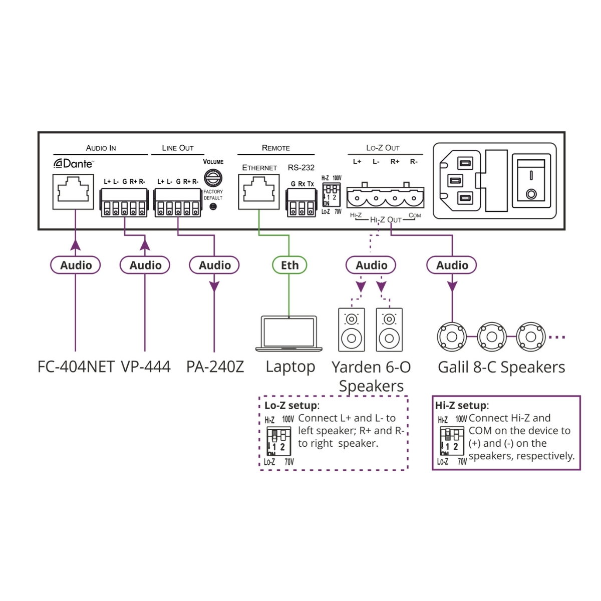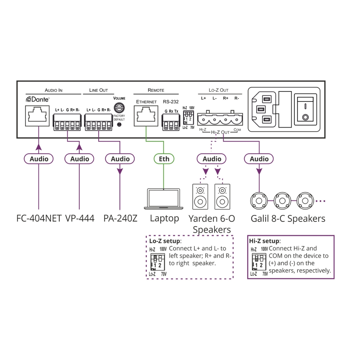 - 2ch Dante input & Stereo Line level input