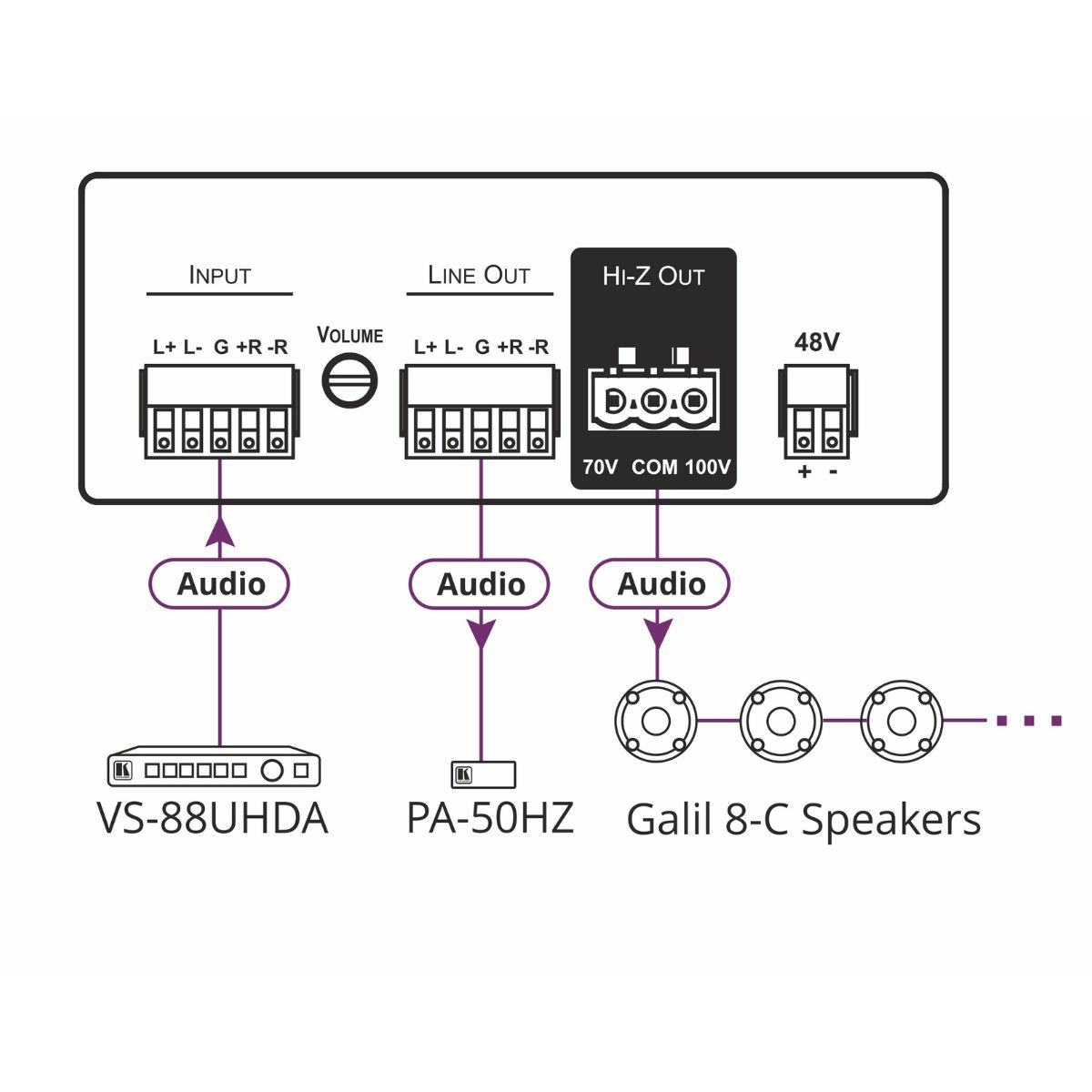 - 70V or 100V Amplification