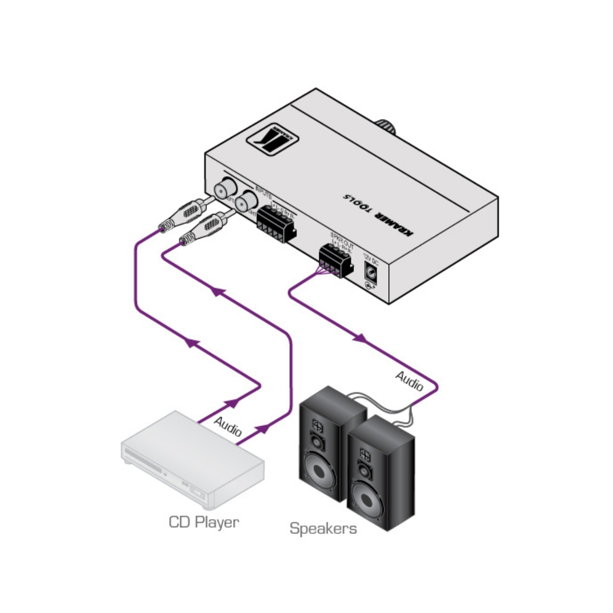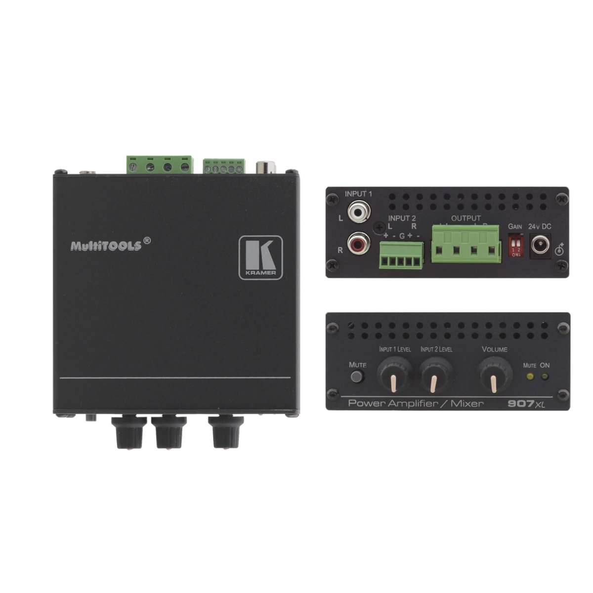 - Compact Kramer TOOLS™ — 3 units can be rack mounted side–by–side in a 1U rack space with the recommended rack adapter.