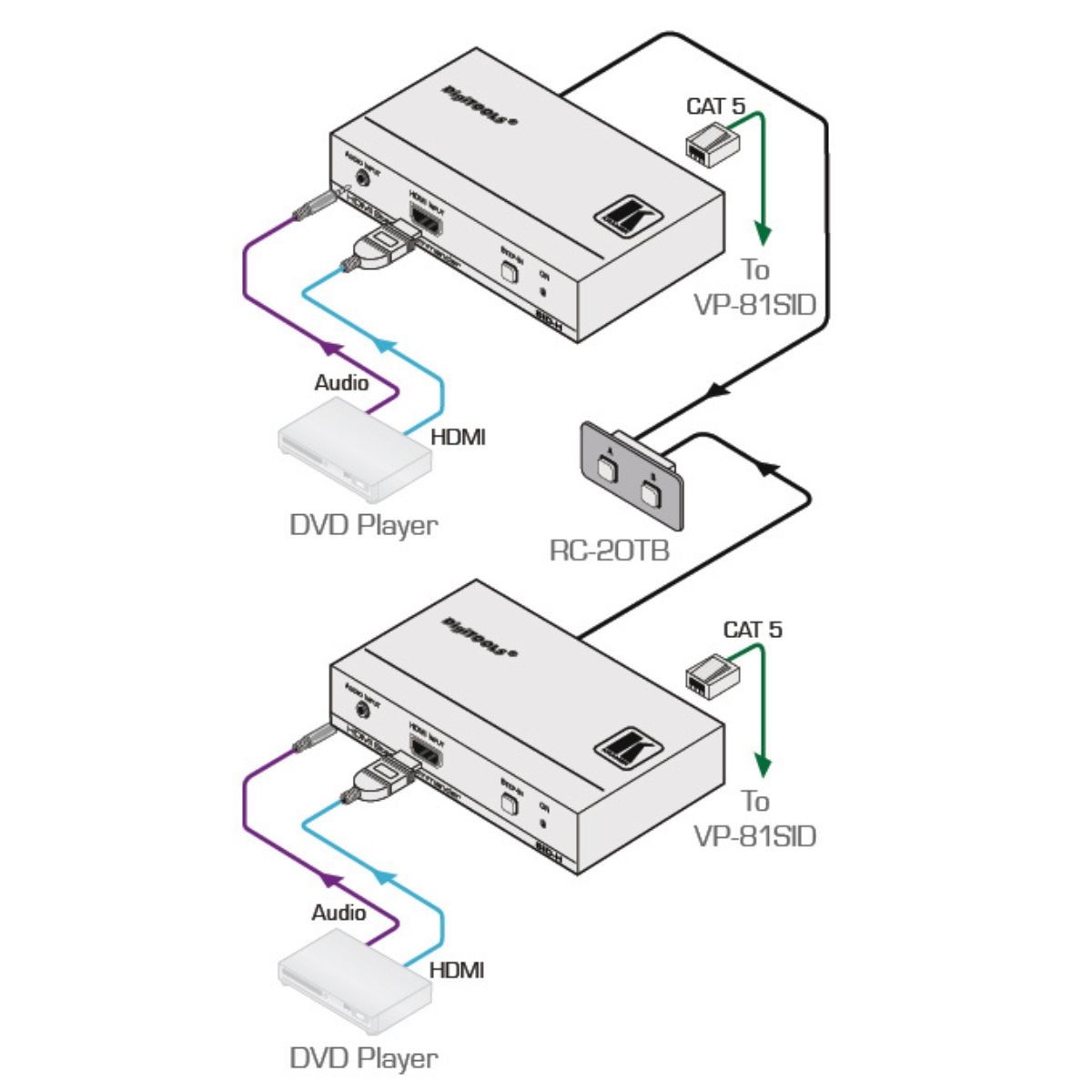 The RC−3TB remotely replicates the buttons of the SL−14RC master room controller.