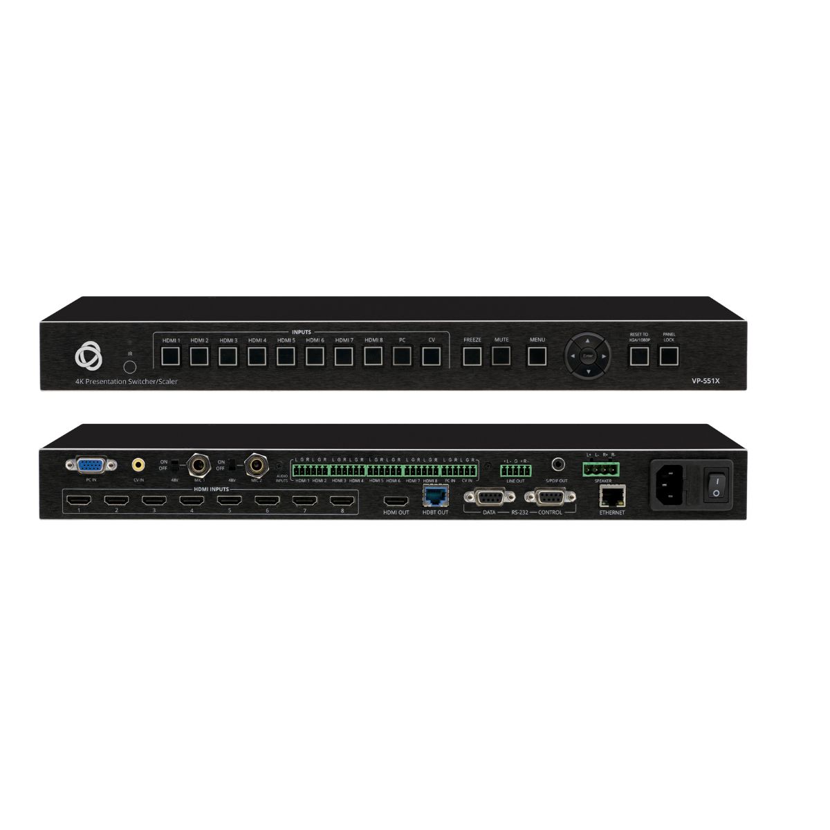 8–Input HDMI & HDBaseT ProScale Presentation Switcher/Scaler with 2K Support & Power Amplifier