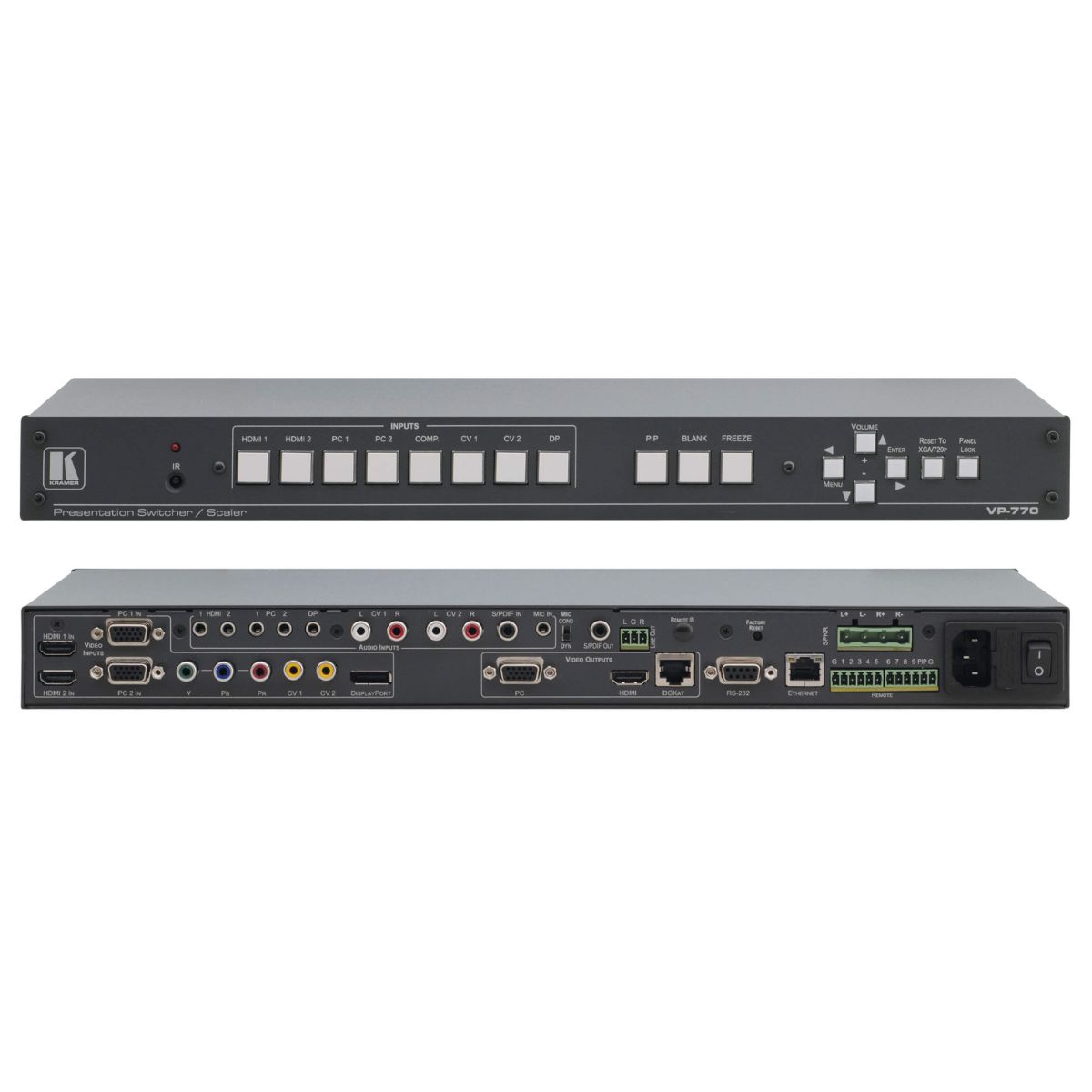 Kramer’s PixPerfect™ Scaling Technology — Kramer’s precision pixel mapping and high-quality scaling technology. High–quality 3:2 and 2:2 pull-down de-interlacing and full up — and down–scaling of all video input signals.