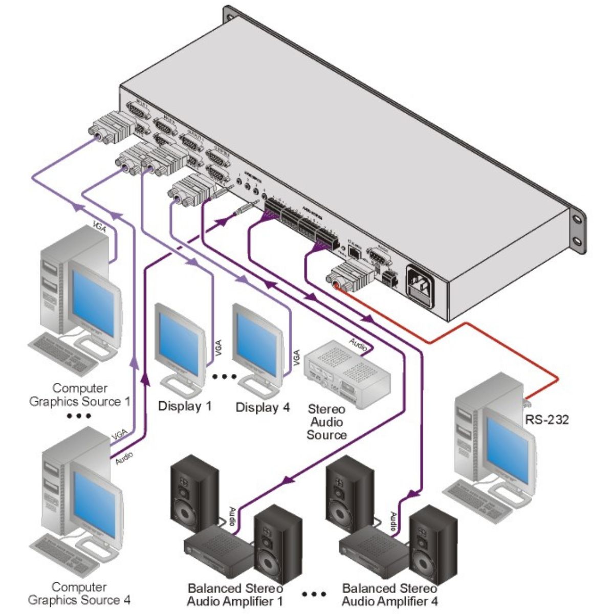 4x4 Computer Graphics Video & Balanced Stereo Audio Matrix Switcher