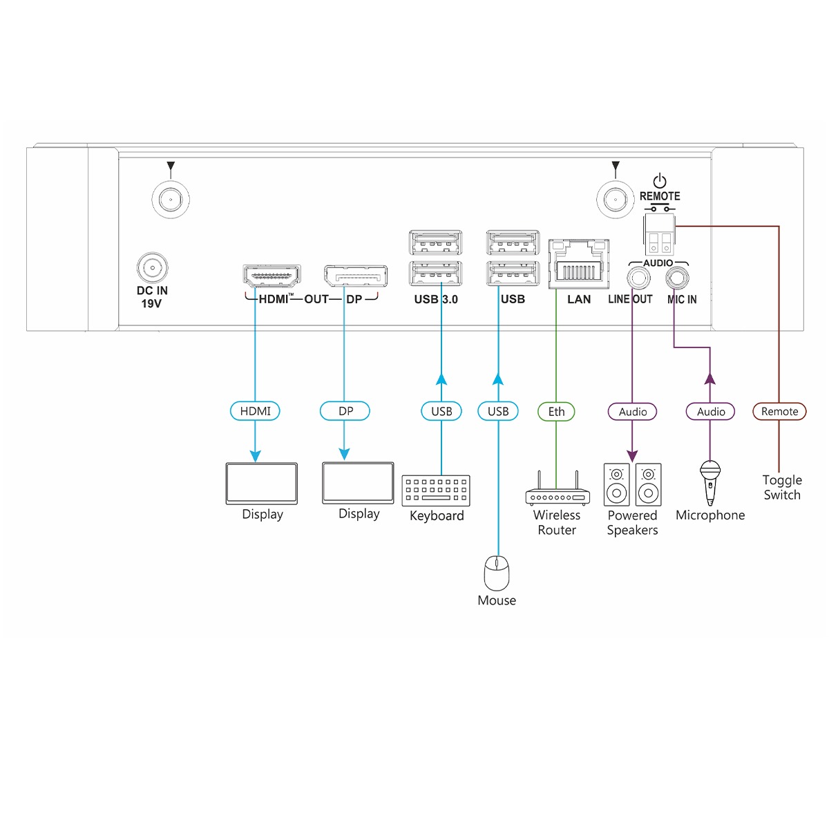 - Optimized for video conferencing using room peripherals
