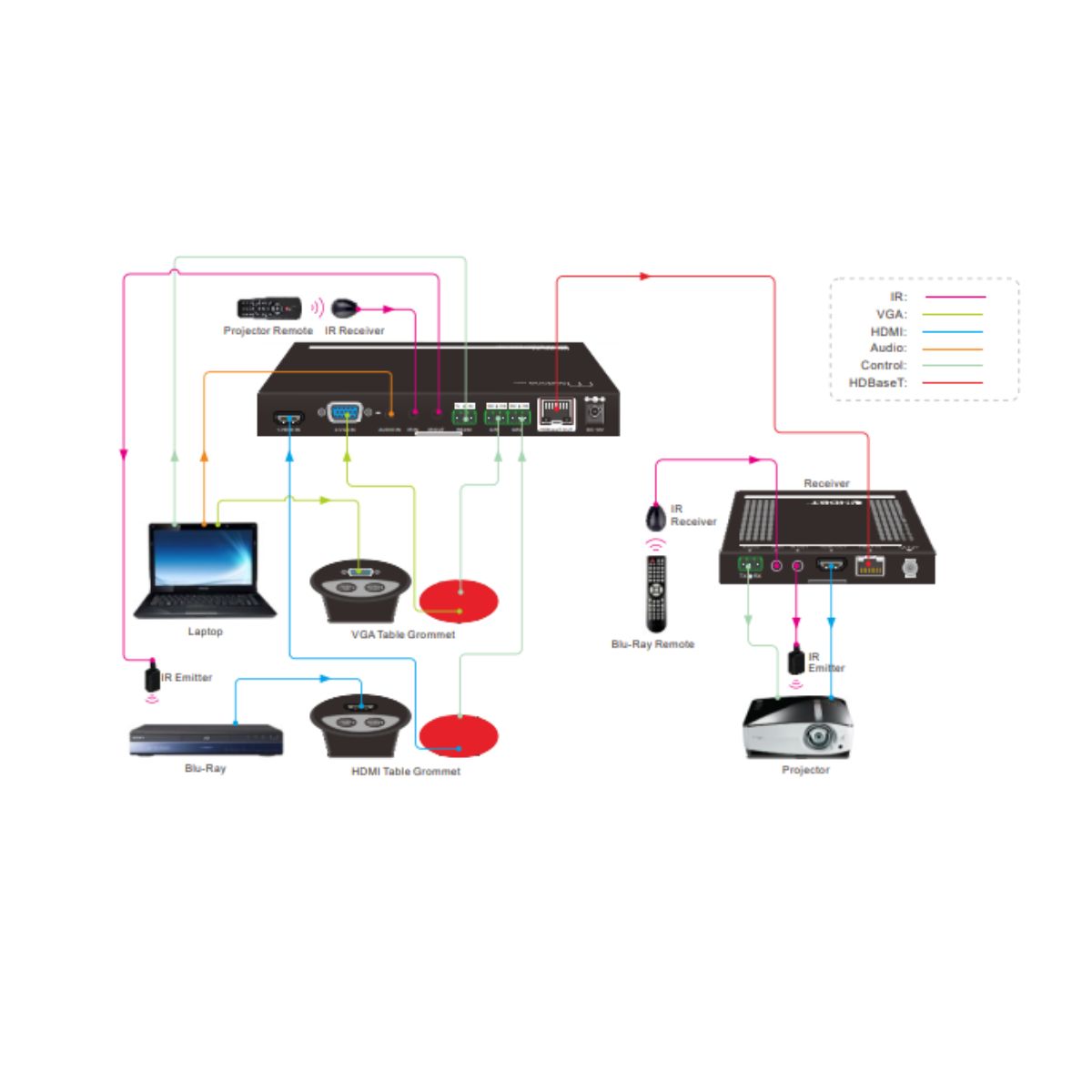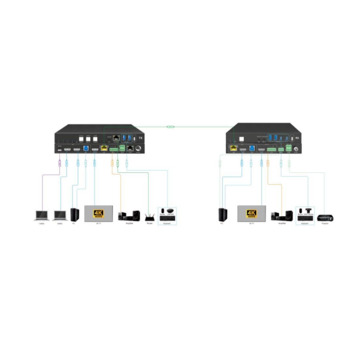 Transmits 4Kx2K up to 131ft (40m) or 1080p up to 230ft (70m) via HDBaseT port.