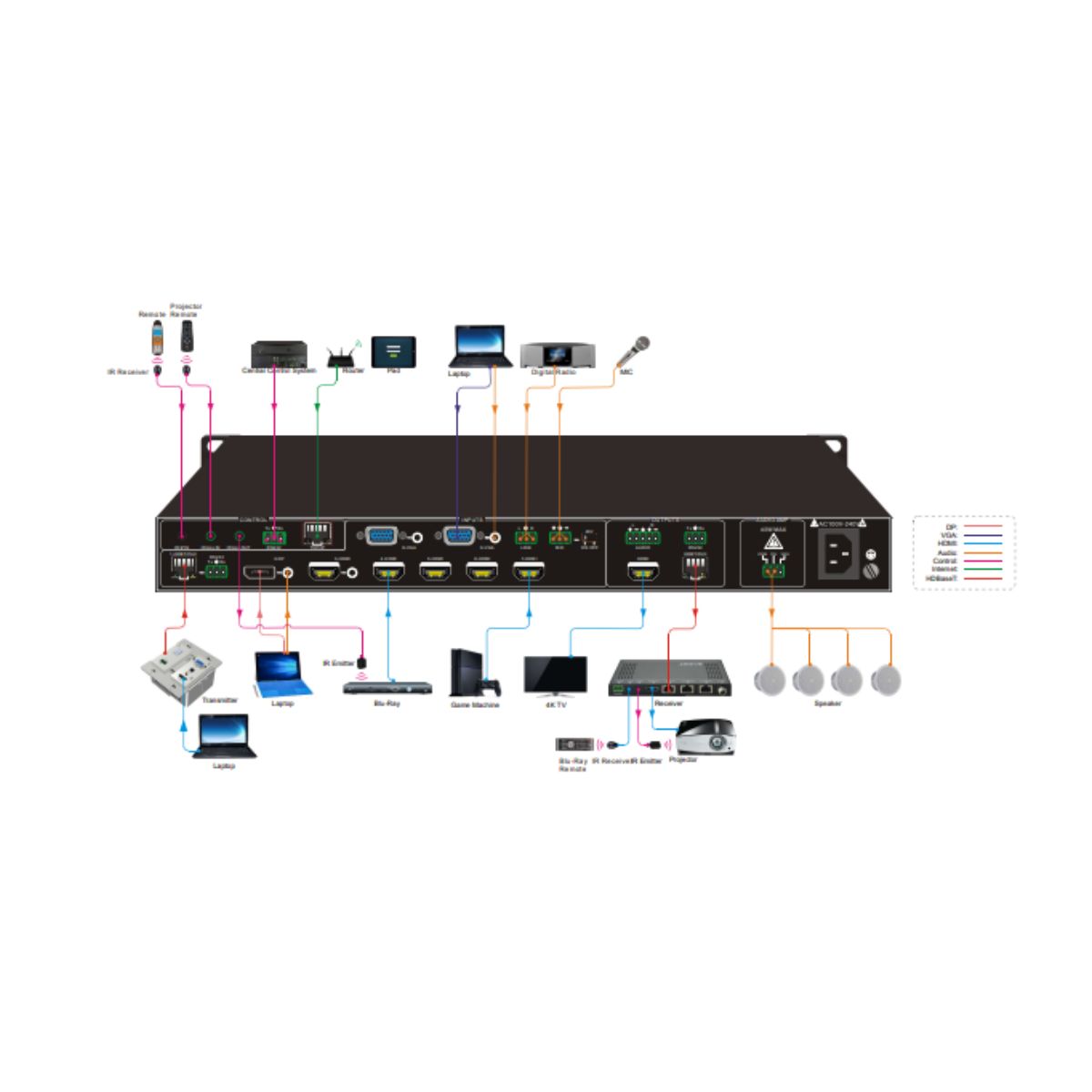 Supports RS232 pass-through to communicate control signals between the scaler and the connected HDBaseT matrix or receiver.