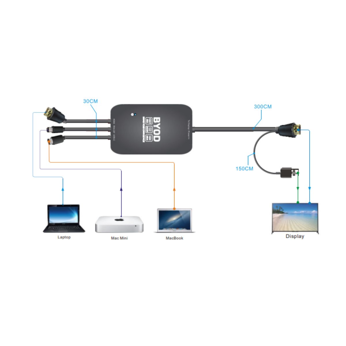 Wireless BYOD (Bring Your Own Device) capability via AirPlay and Miracast.