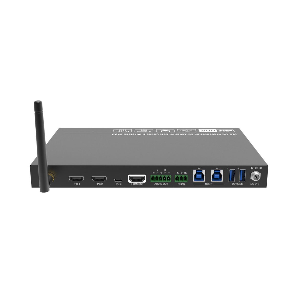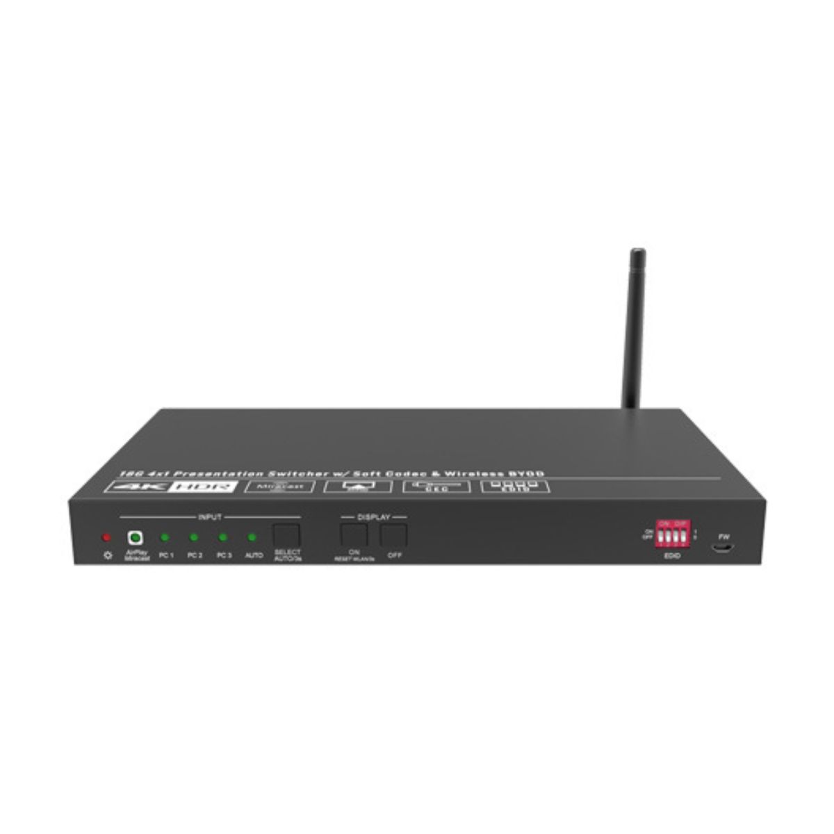 18G 4x1 presentation switcher with soft codec & wireless BYOD.