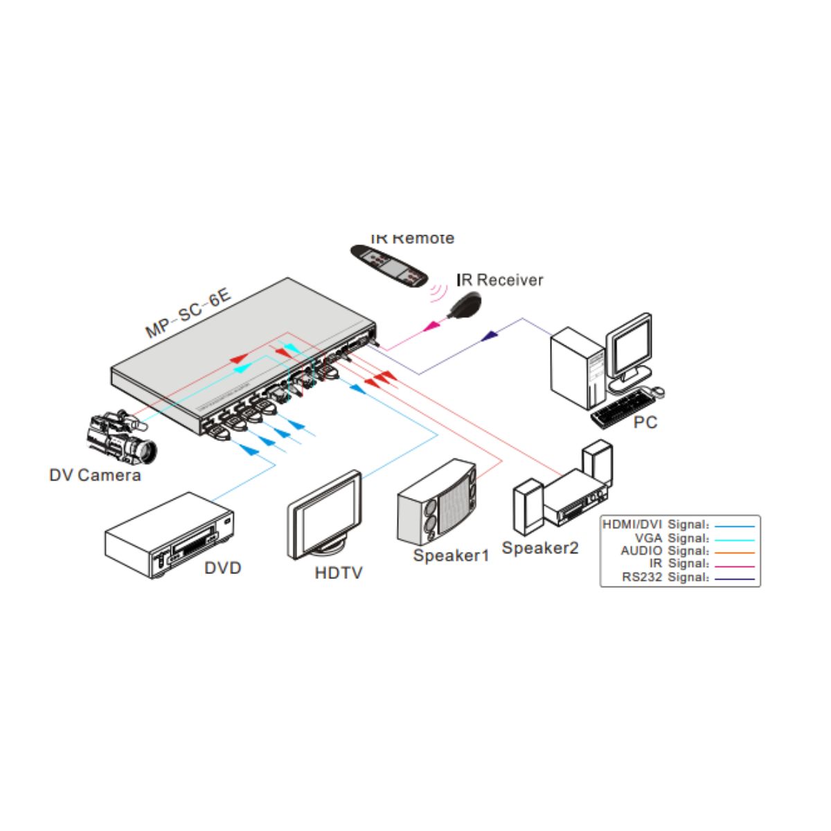 Switch select 6 input source to HDMI output