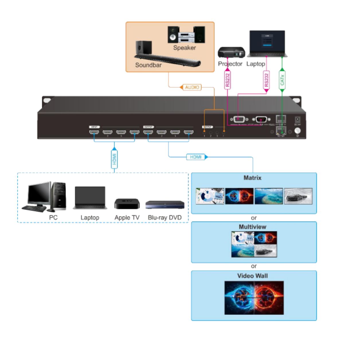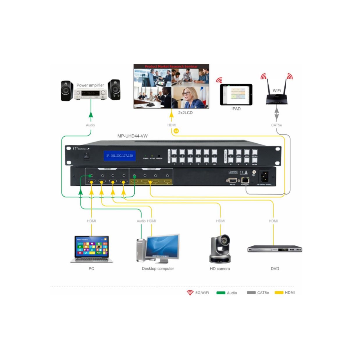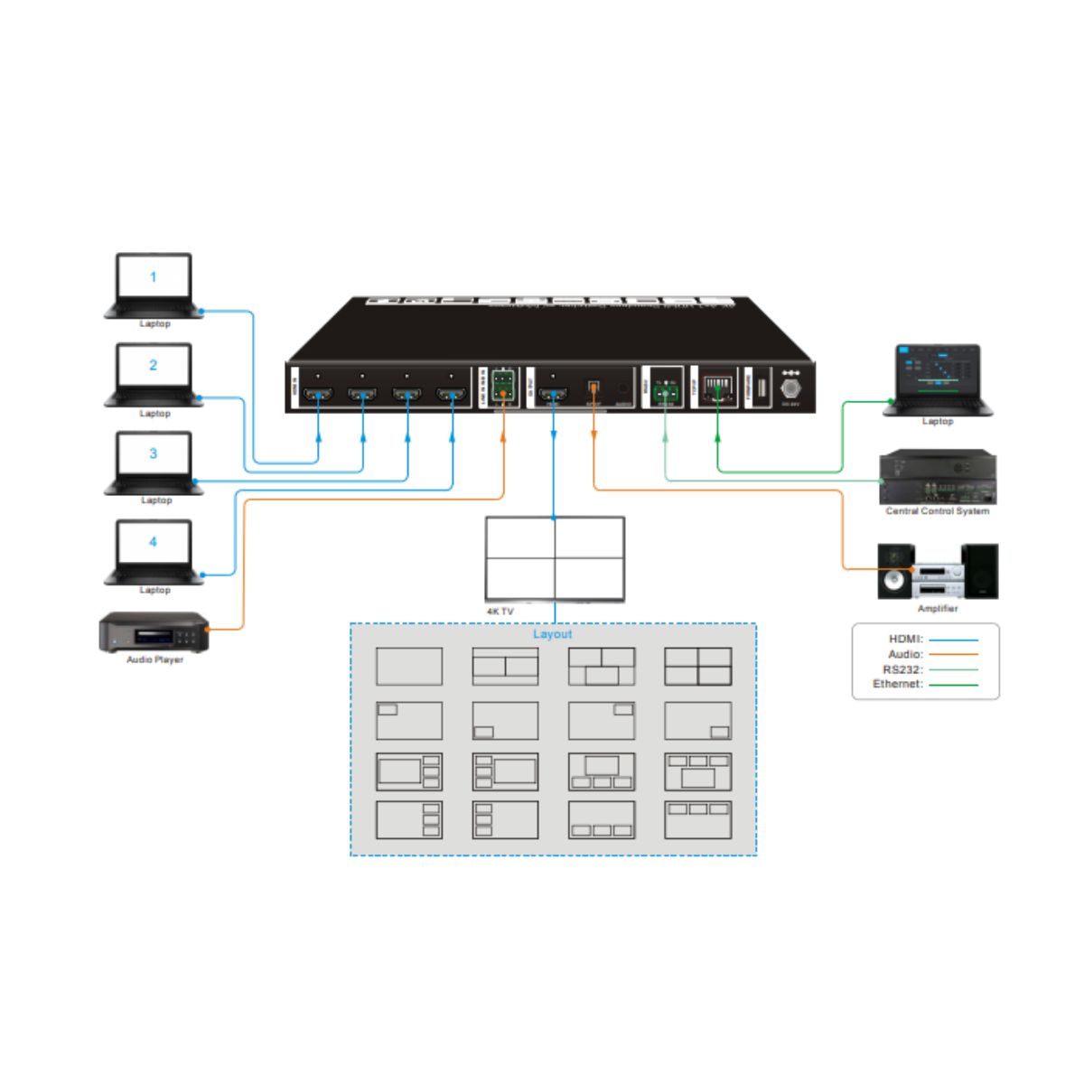4 HDMI inputs and 4 HDMI outputs with real-time seamless switching;