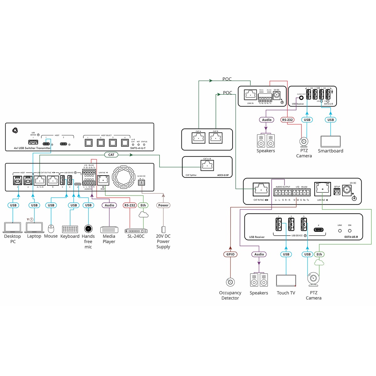 - Splits 1 CAT to dual CAT cables