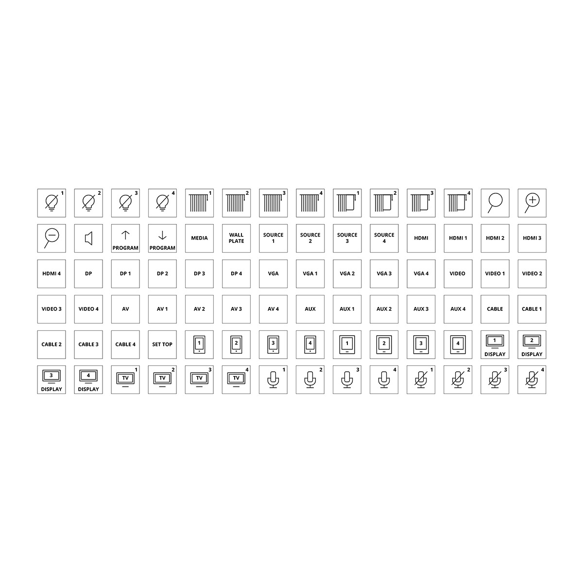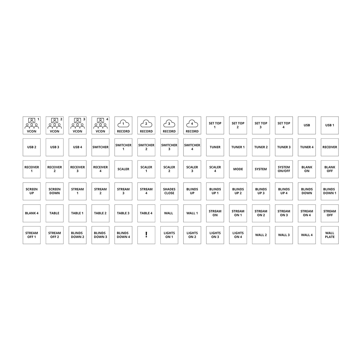 Advanced Keypad Label Set is four pages of labels used to label RC−306 and RC−308 control keypad buttons. The labels are inserted under the button caps.