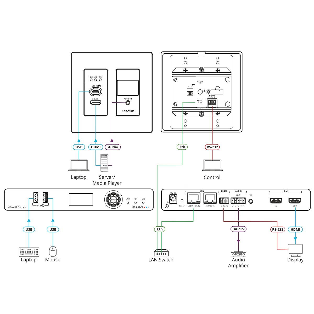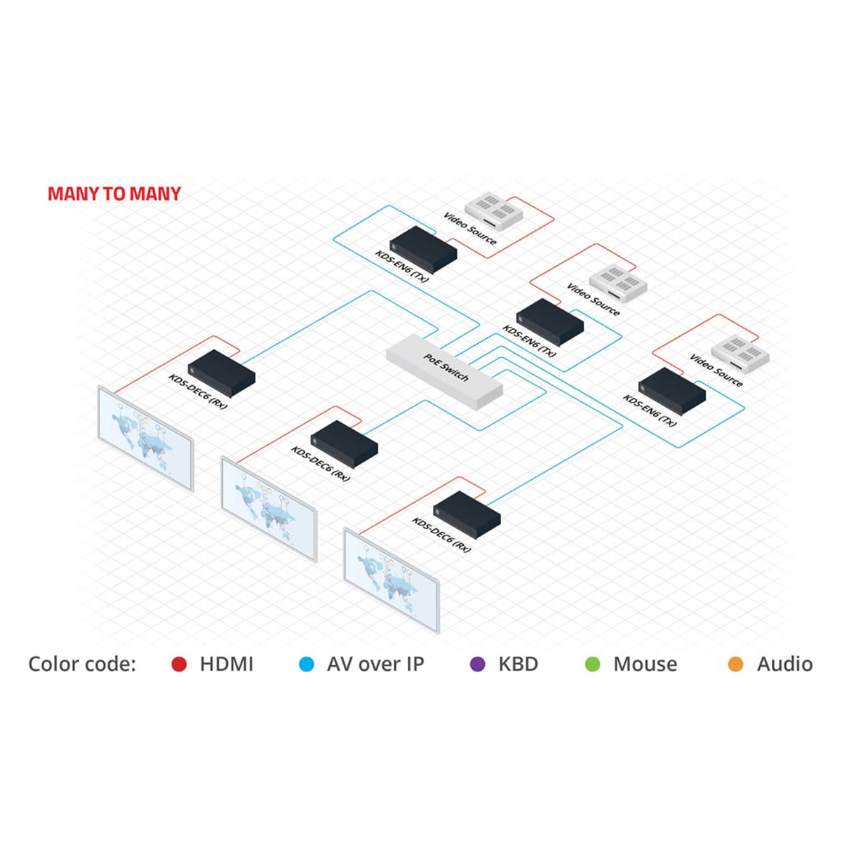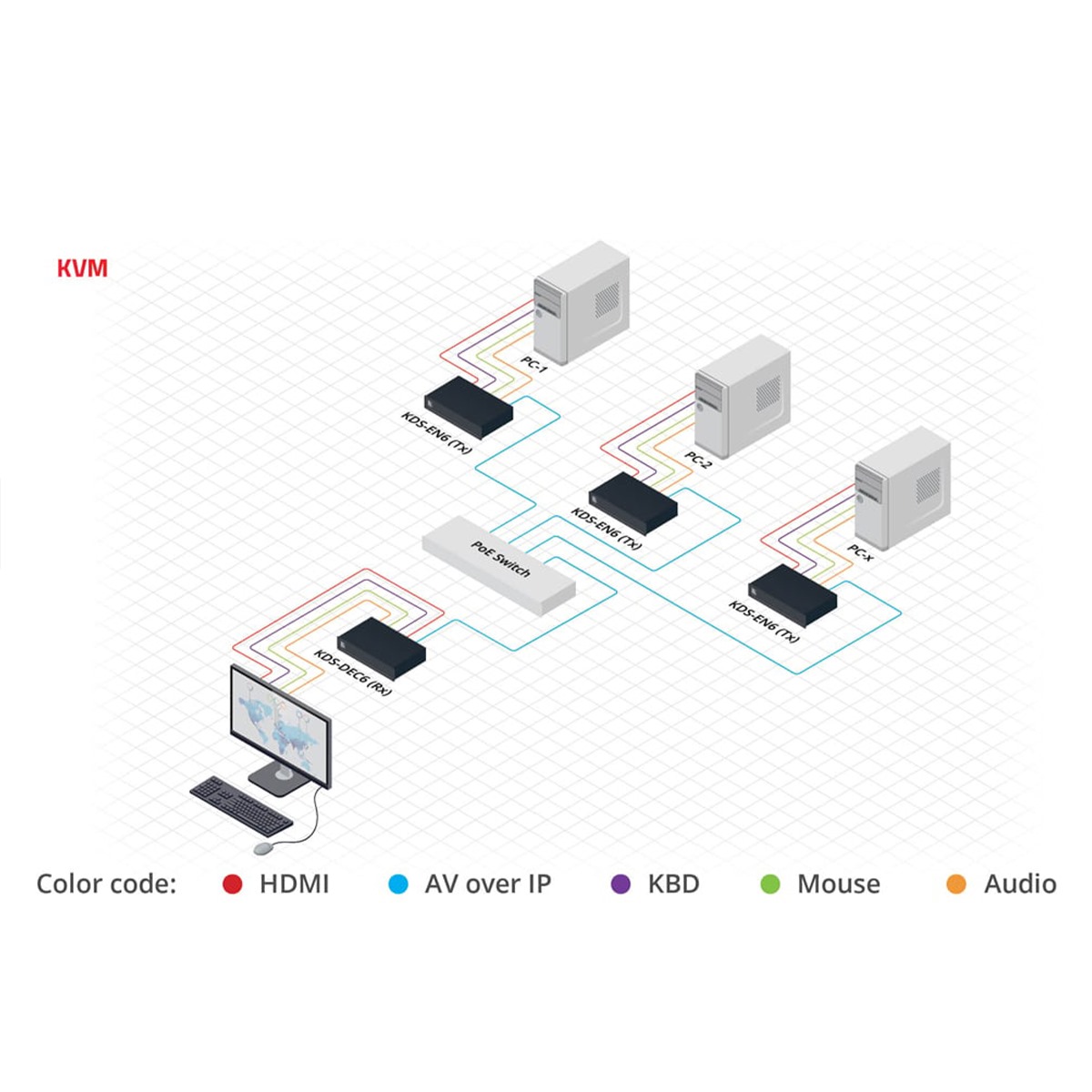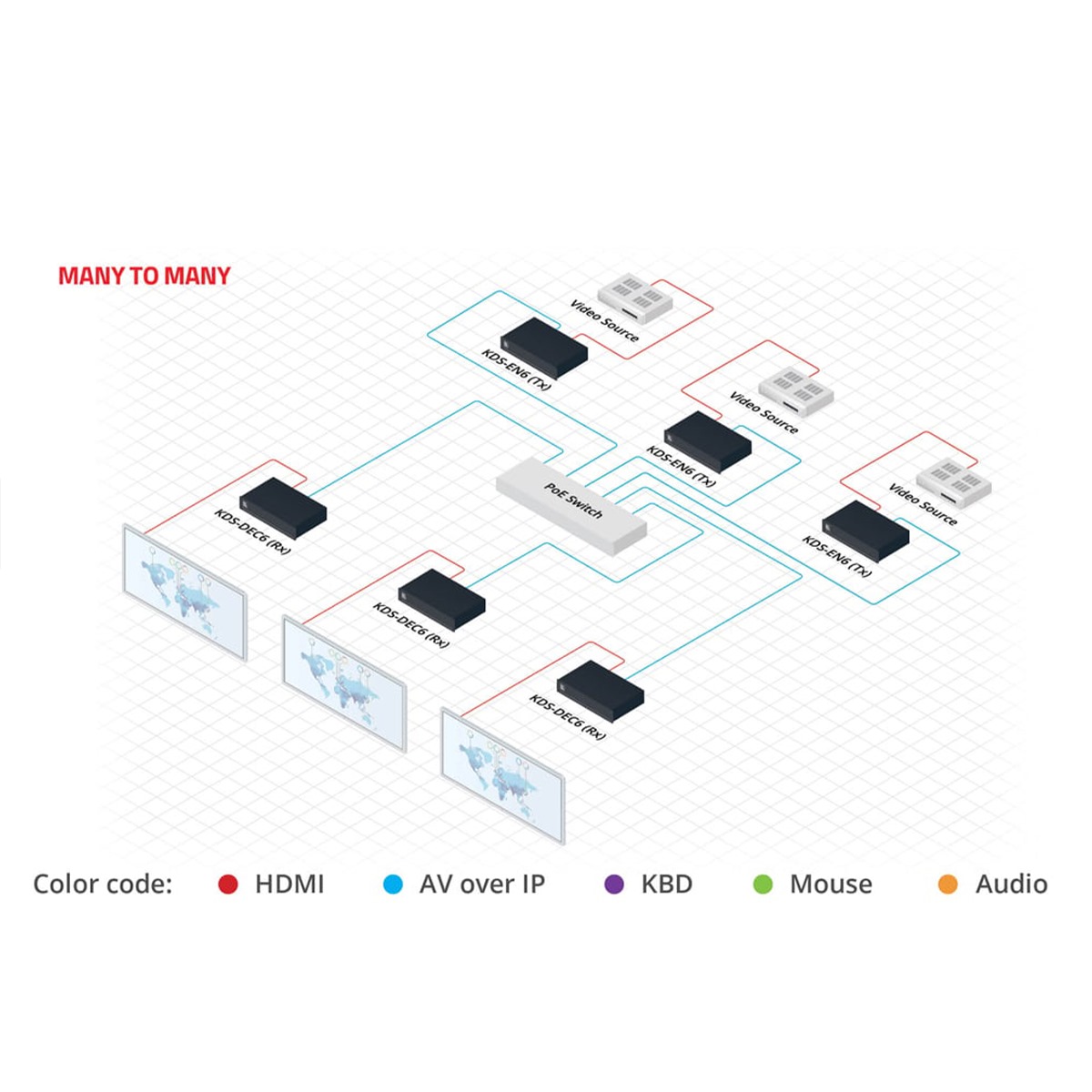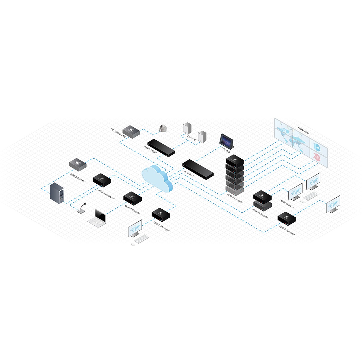 Centralized Management — Manage and configure multiple compatible KDS–8 devices through a single web interface. Control the independent routing of video, audio and control signals.