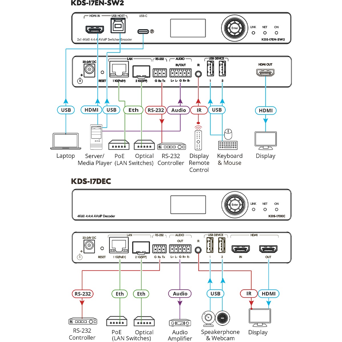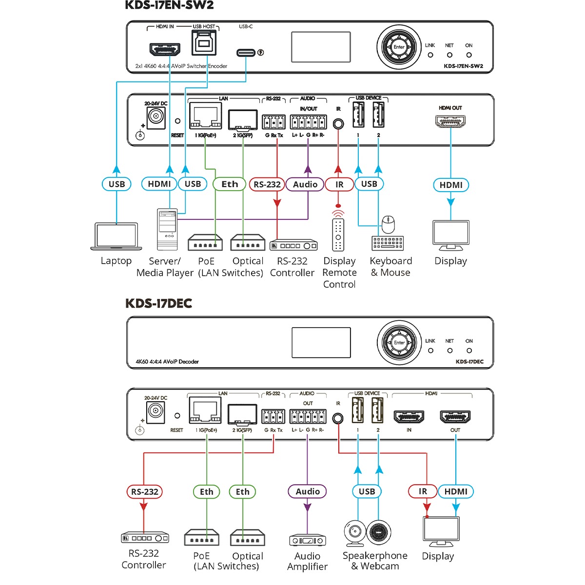 KDS–17EN–SW2 2x1 4K60 4:4:4 AVoIP Switcher Encoder with Dante
