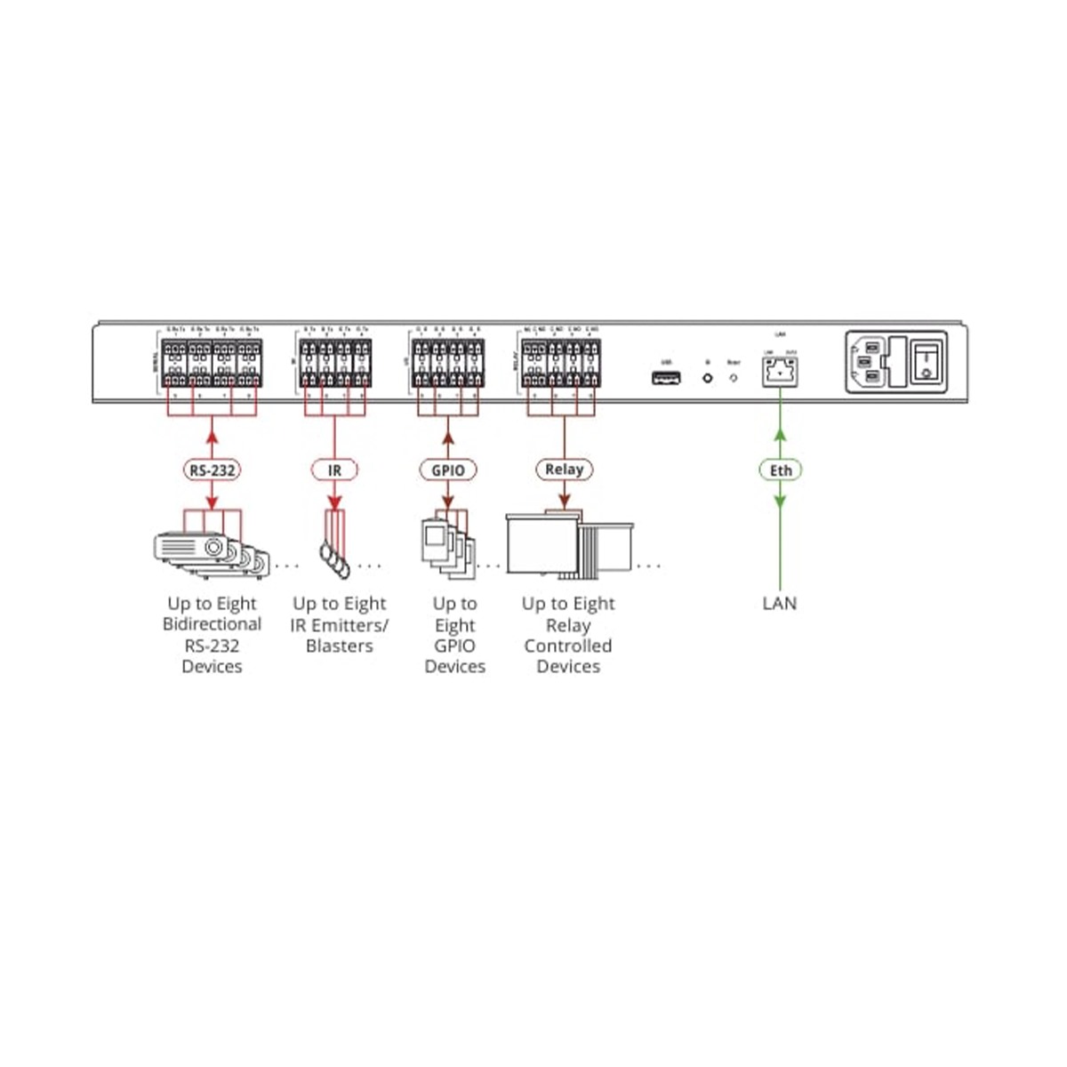 7–port Serial, IR, and Relay, Ethernet Room Controller