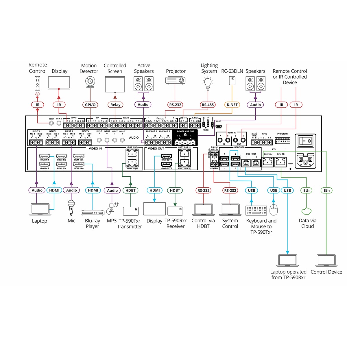 - Control Gateway with RS–232, IR, GPI/O, and Relay Ports