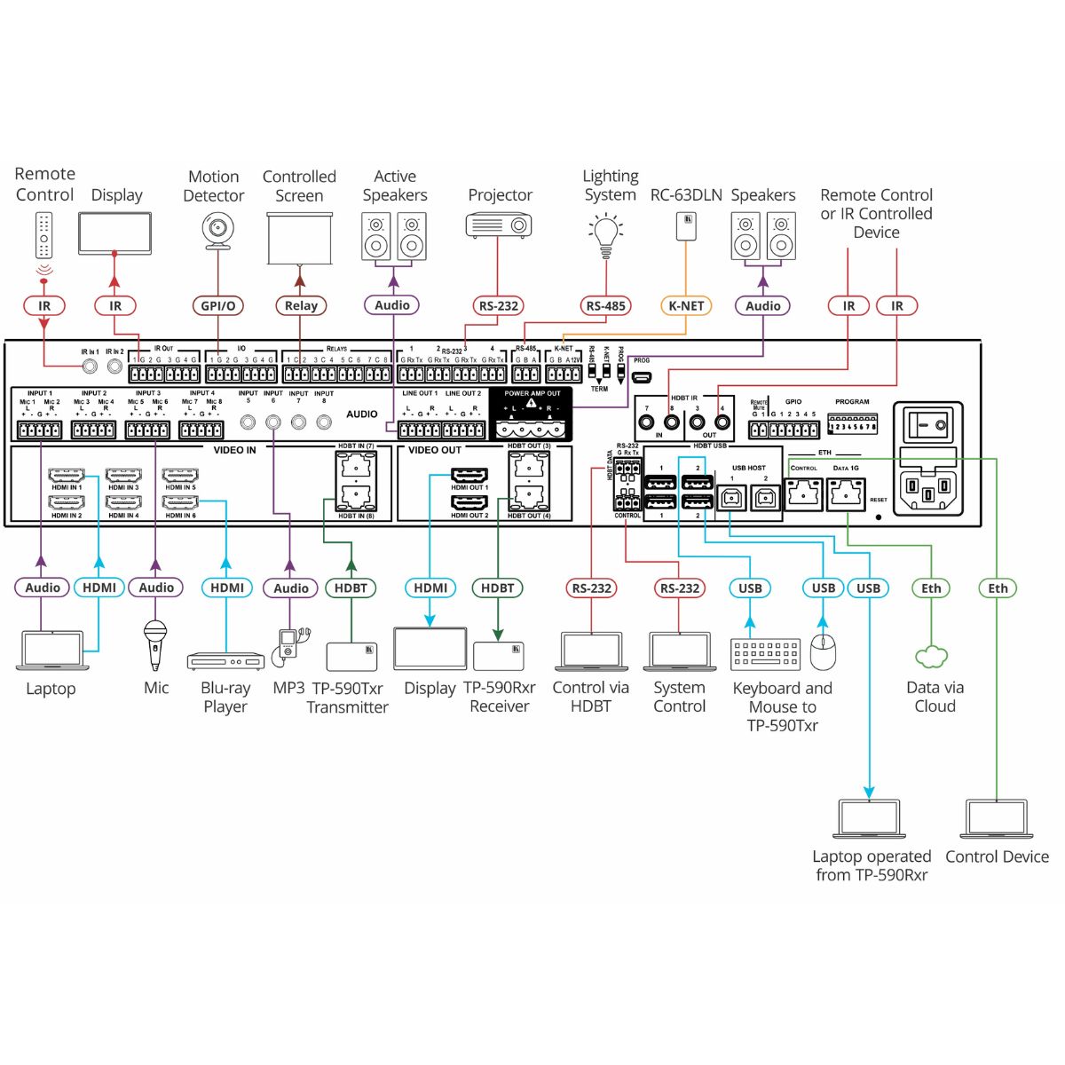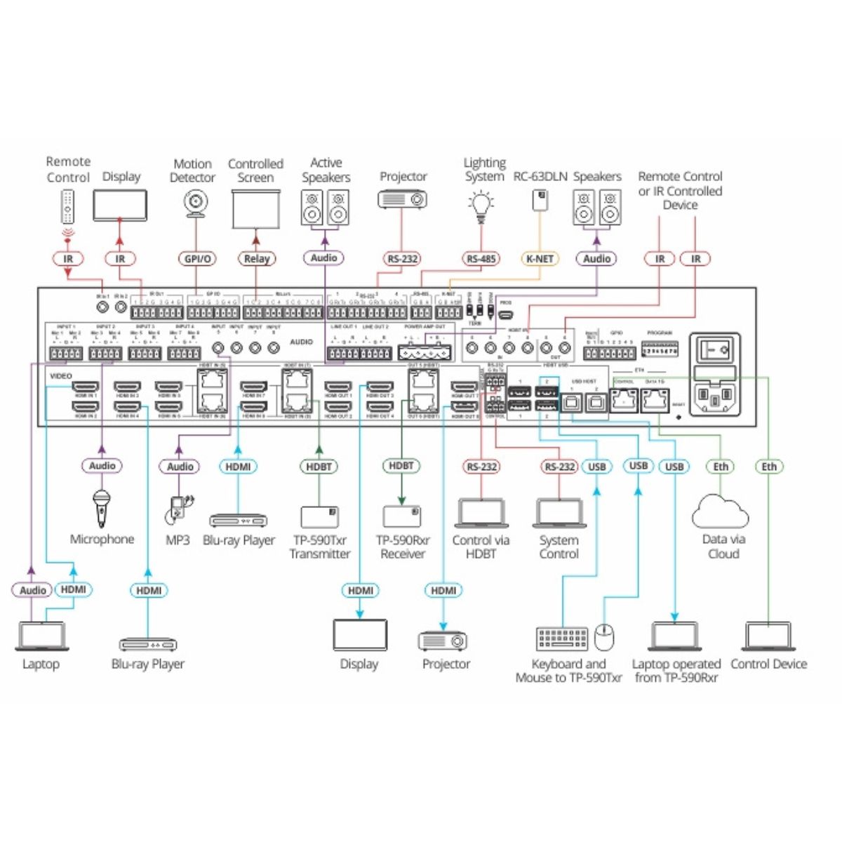 - Control Gateway with RS–232, IR, GPI/O, and Relay Ports