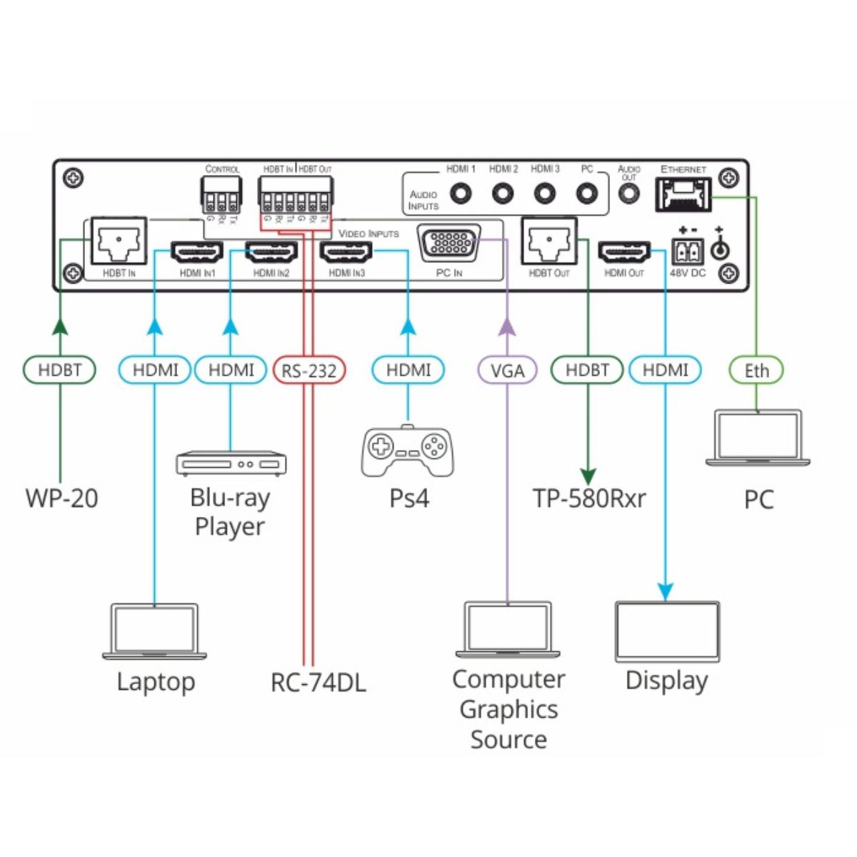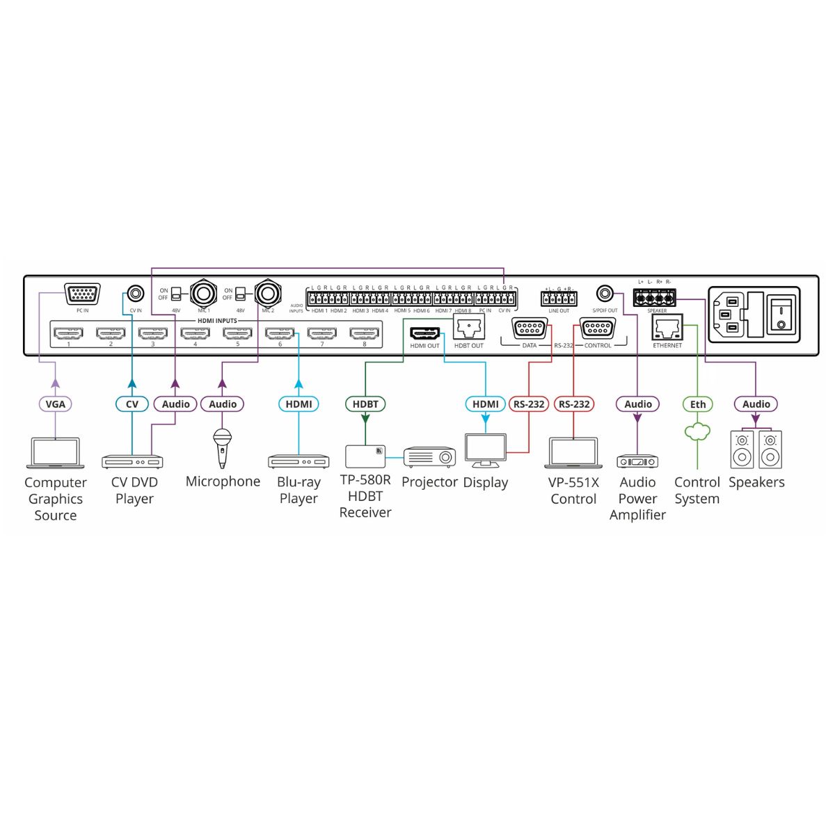 8–Input HDMI & HDBaseT ProScale Presentation Switcher/Scaler with 2K Support & Power Amplifier