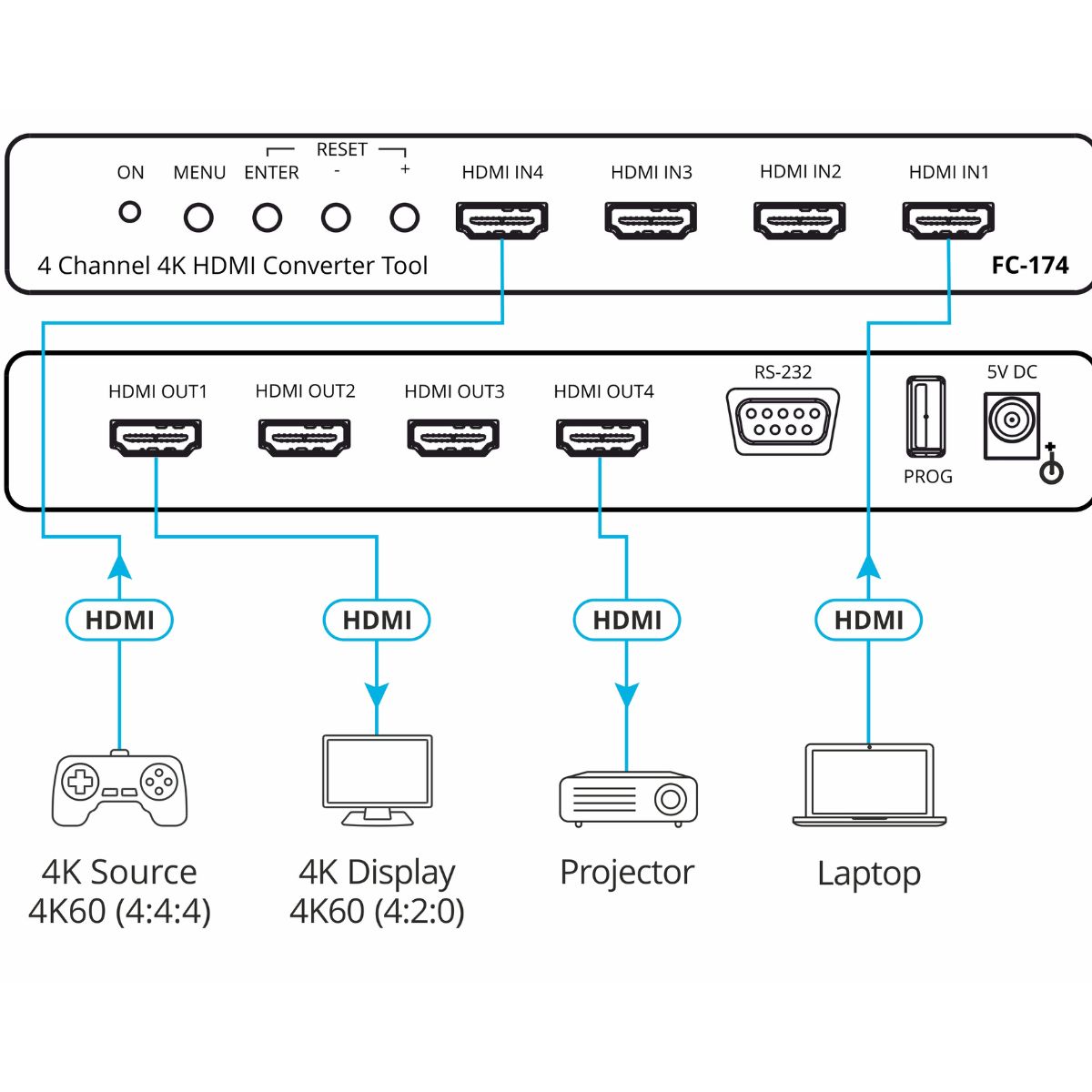 4–Channel HDMI 4K60 4:4:4/4:2:0 Converter with HDCP 1.4 & 2.2