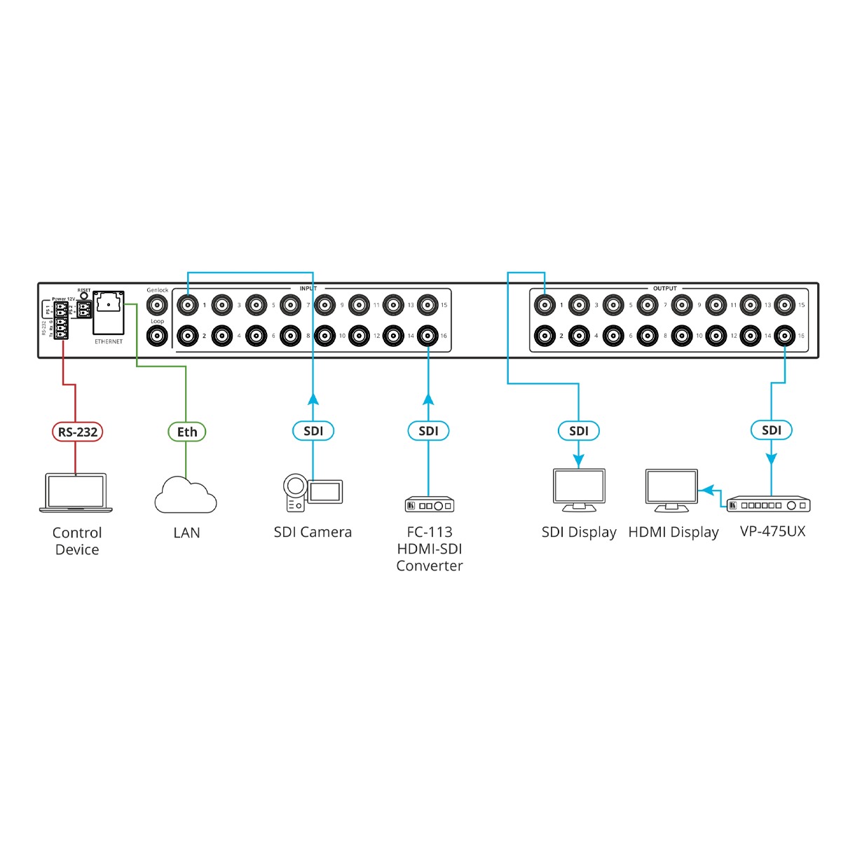 RPS−16/32 is a 12V/5A redundant power supply for the ASPEN 7272HD−3G HD–SDI router. The power supply has a universal 100VAC− 240VAC input.