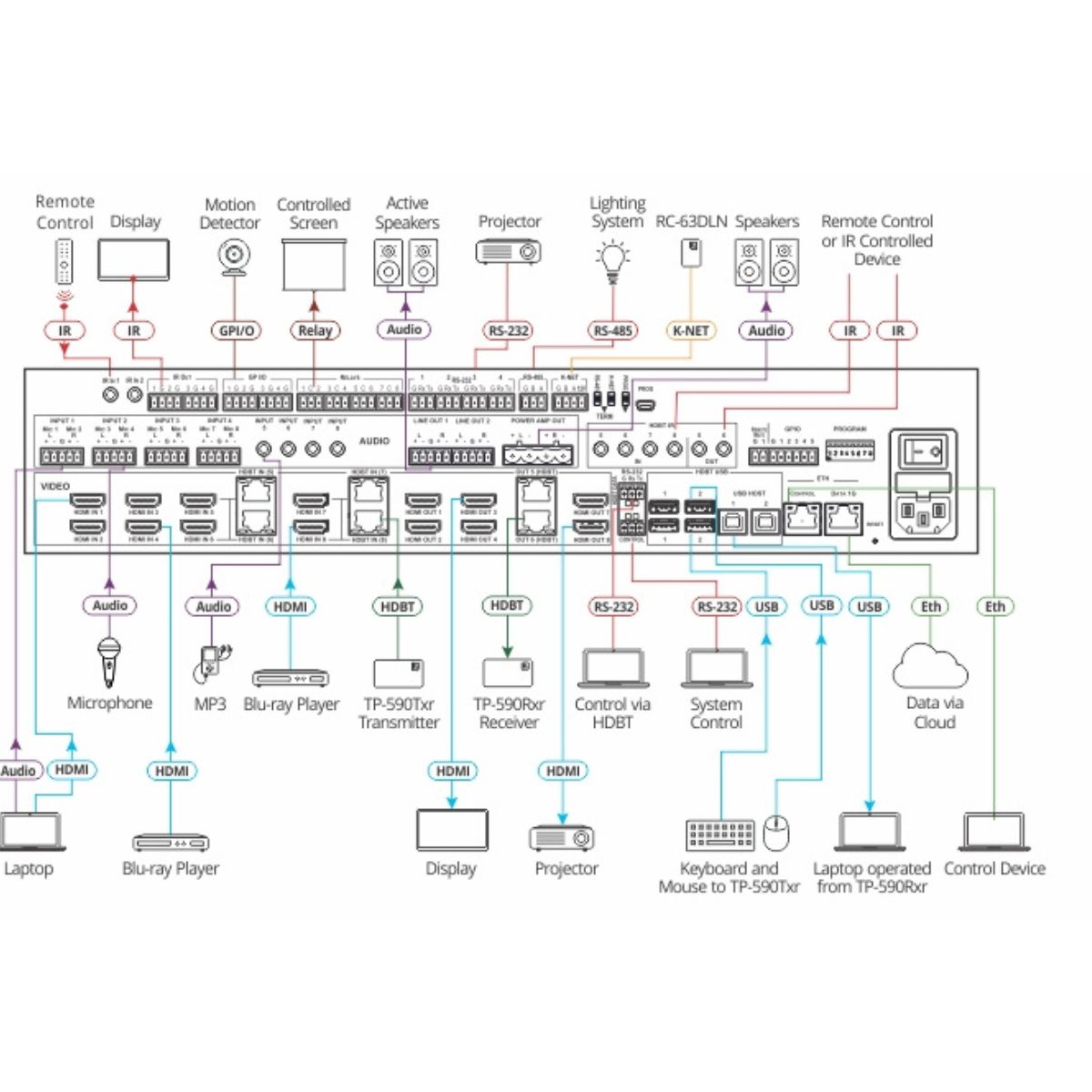 - Control Gateway with RS–232, IR, GPI/O, and Relay Ports