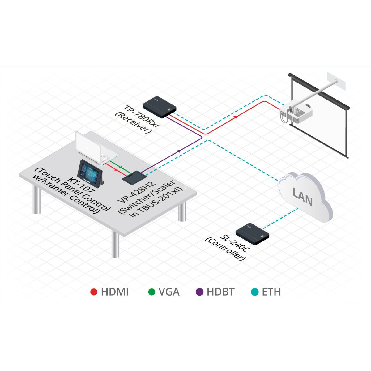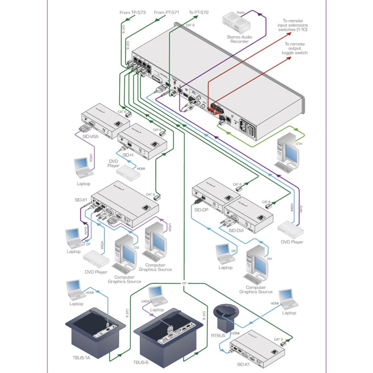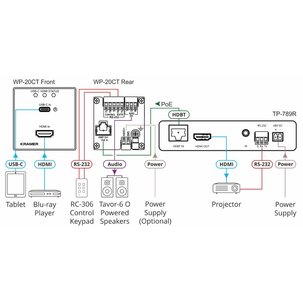 - HDBaseT Tunneling of Ethernet, RS–232 and IR signals, and PoE
