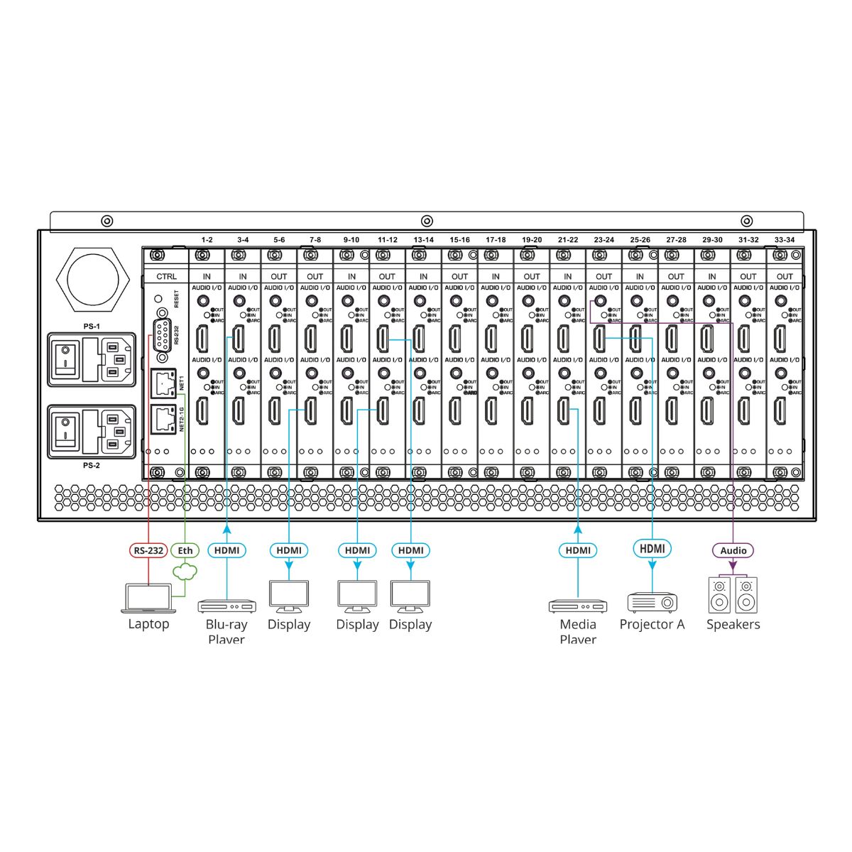 8K–Ready 34–Port Multi–Format Digital Matrix Switcher with Interchangeable I/Os