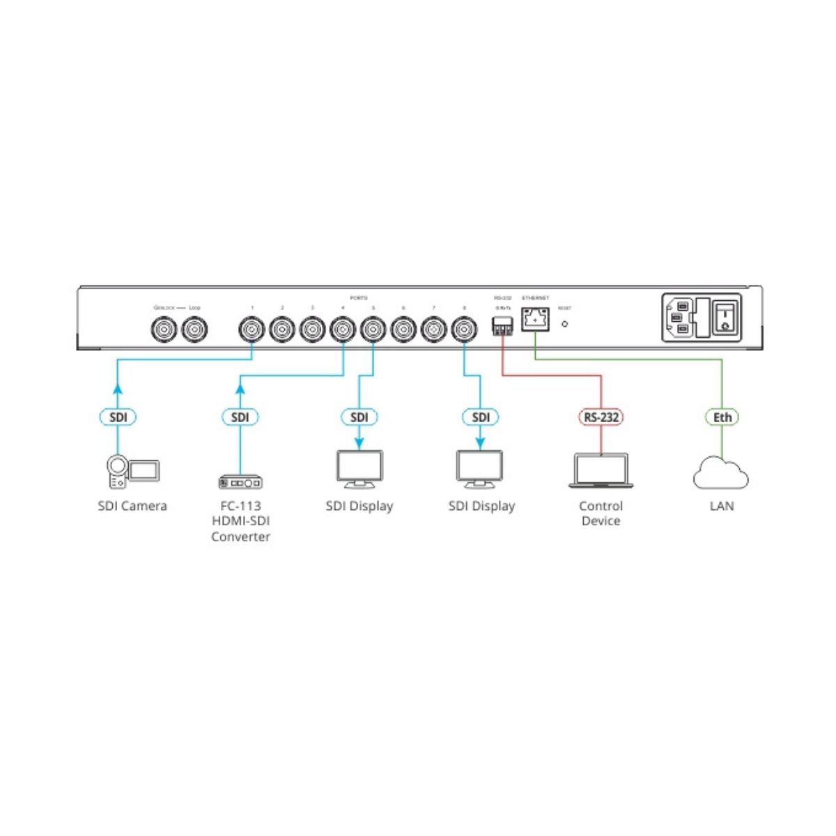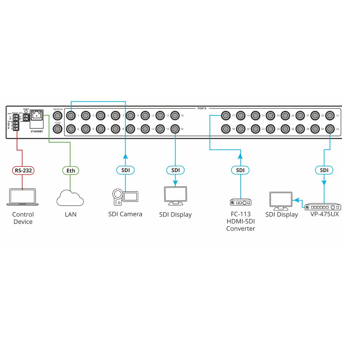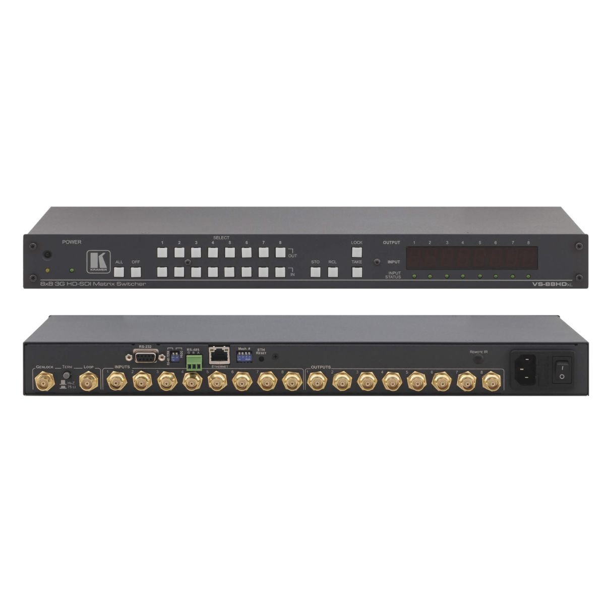 The Lassen HD XL Series offers flexibility and adaptability to any application where saving space and costs are important. 3232HDS−XL is a 32x32 HD−SDI (1.5G) & analog balanced stereo audio matrix switcher, available in a compact 3RU frame. 3232HDS−XL also supports breakaway stereo audio switching whereby the digital video, audio left, and audio right can all be routed independently. It offers control via the front panel or remotely via RS−232 or Ethernet.