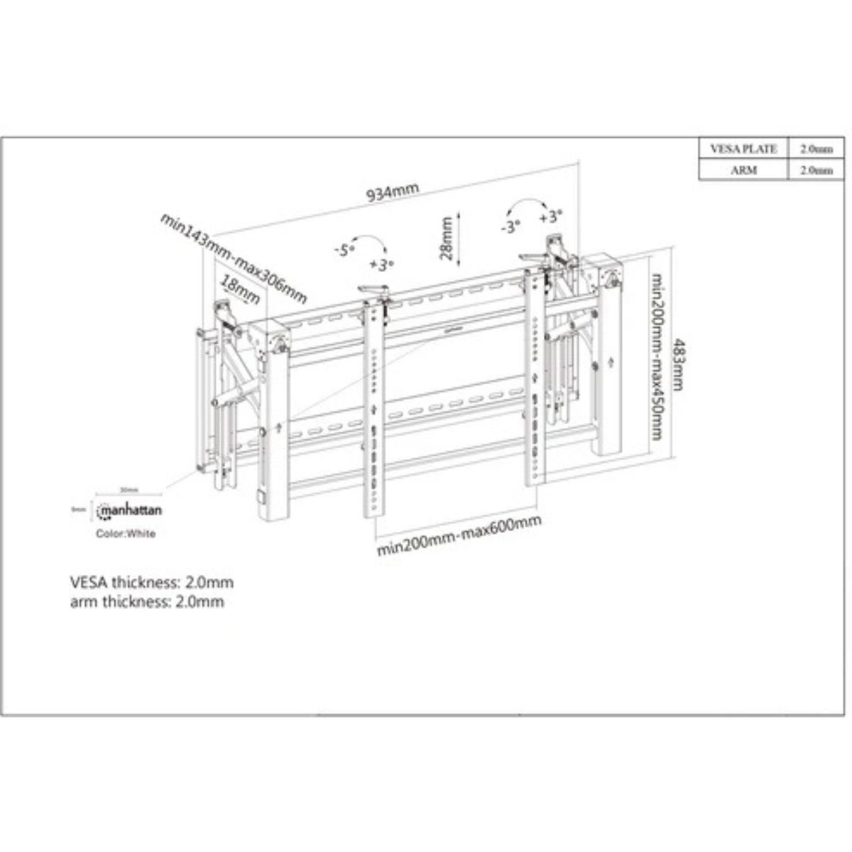 - Tilt adjustment from -5° to 3° for optimal views