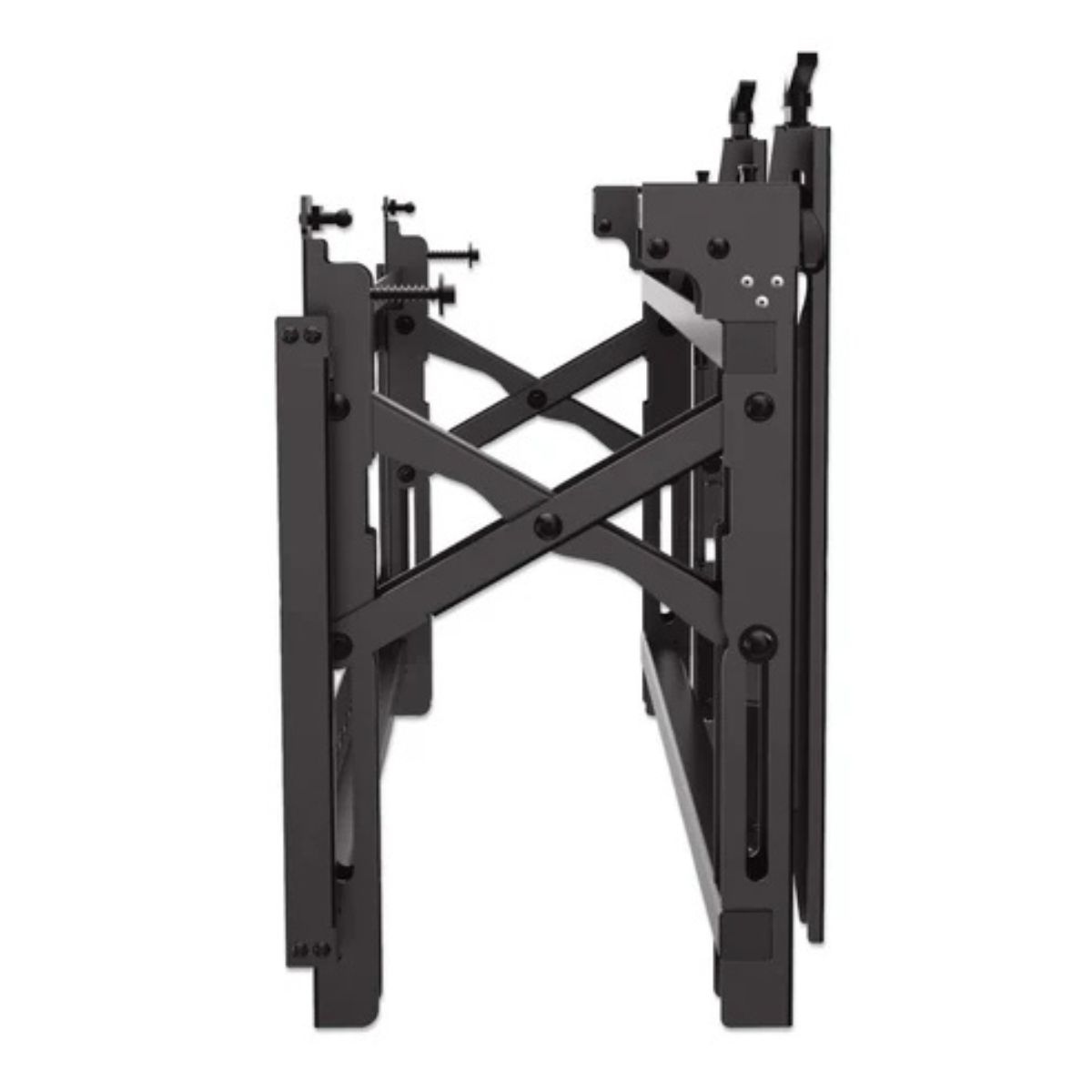 - Securely holds a flat-screen TV for a video wall installation