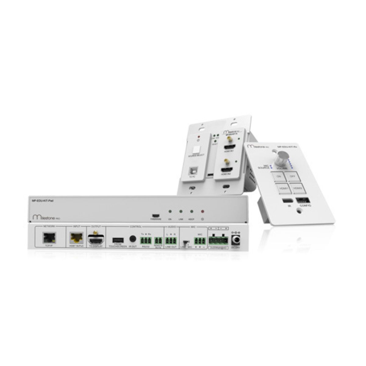 Control via Front panel buttons, RS232 commands, and IR Remote