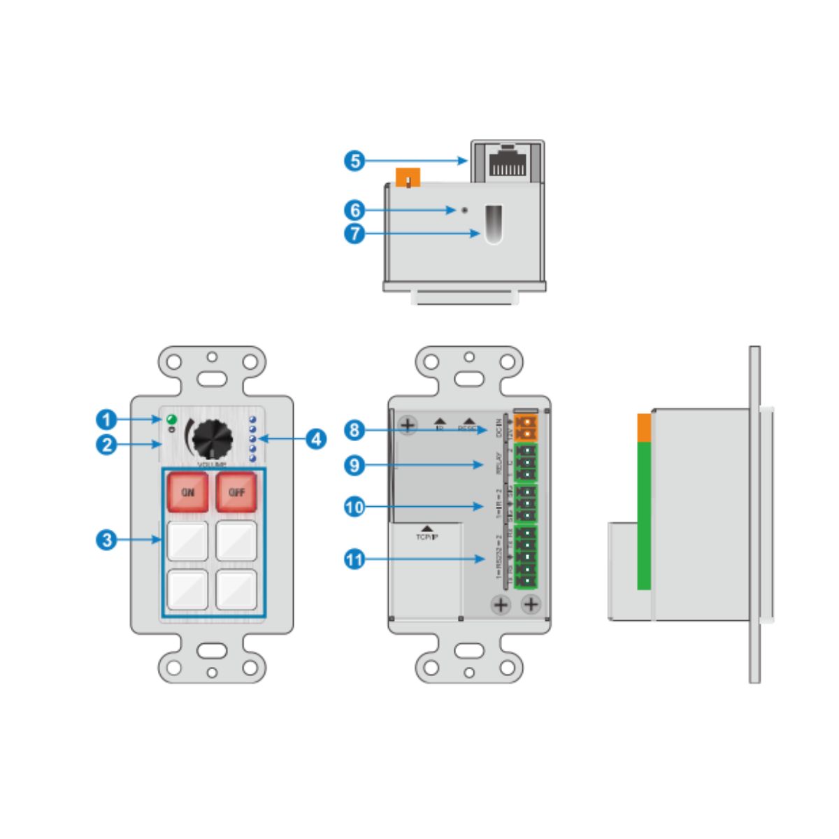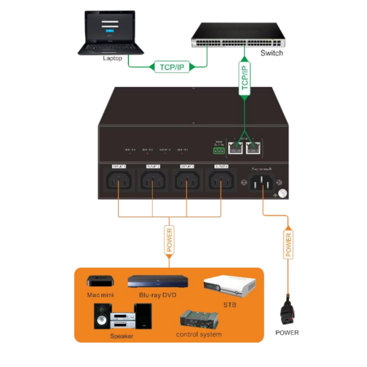 - Support IR, RS232, and TCP/IP control;