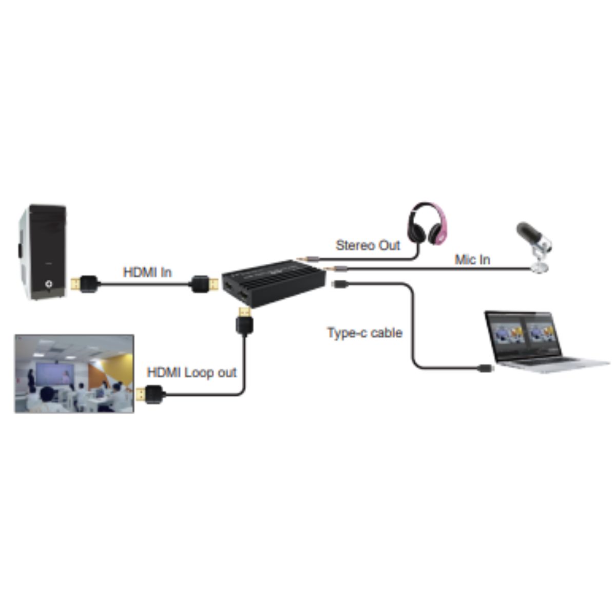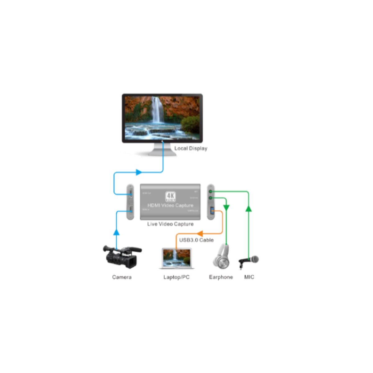 - Capture video and audio from HDMI sources
