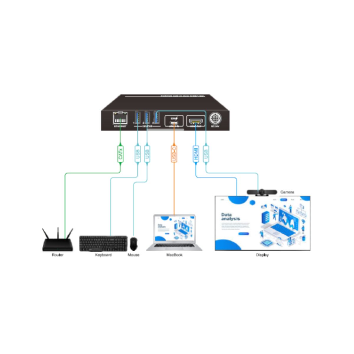- Output: 4k HDMI 2.0 loop out, Type-C (5Gbps) output, audio output