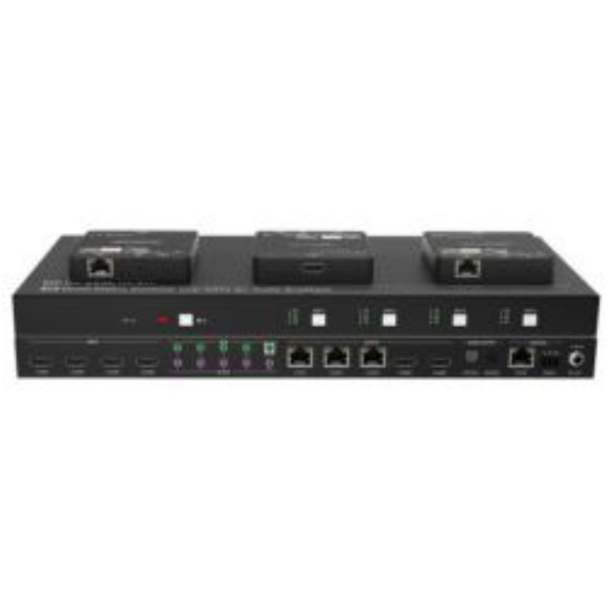 - 4x2 matrix switcher with HDBaseT inputs and outputs.