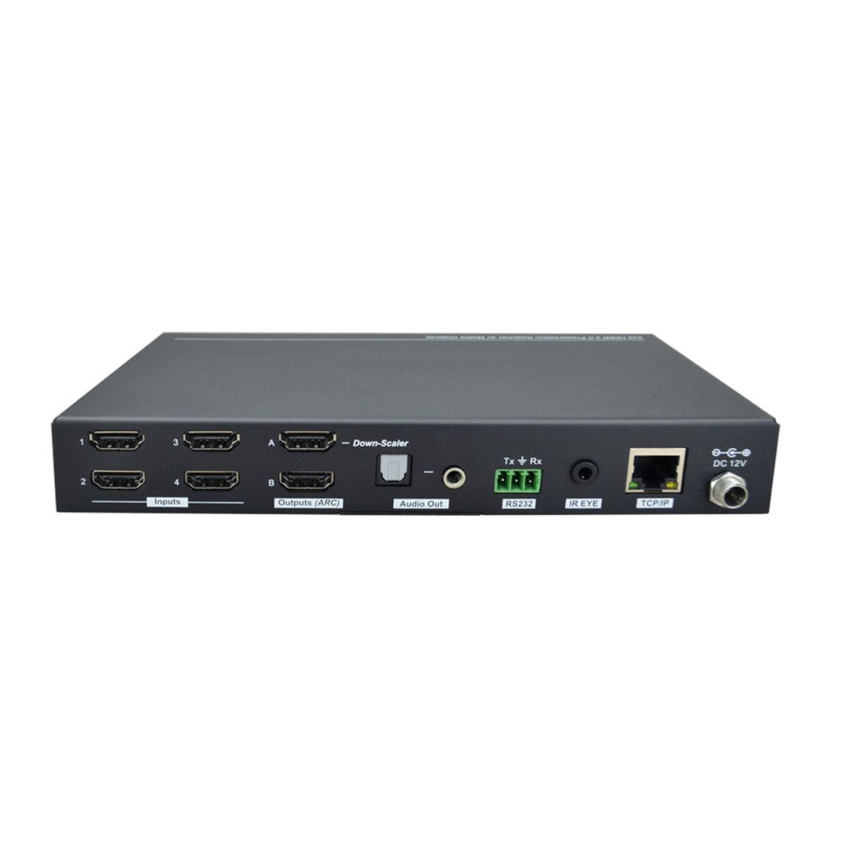 - 4x2 HDMI 2.0 Matrix Switcher with 4 HDMI inputs and 2 HDMI outputs