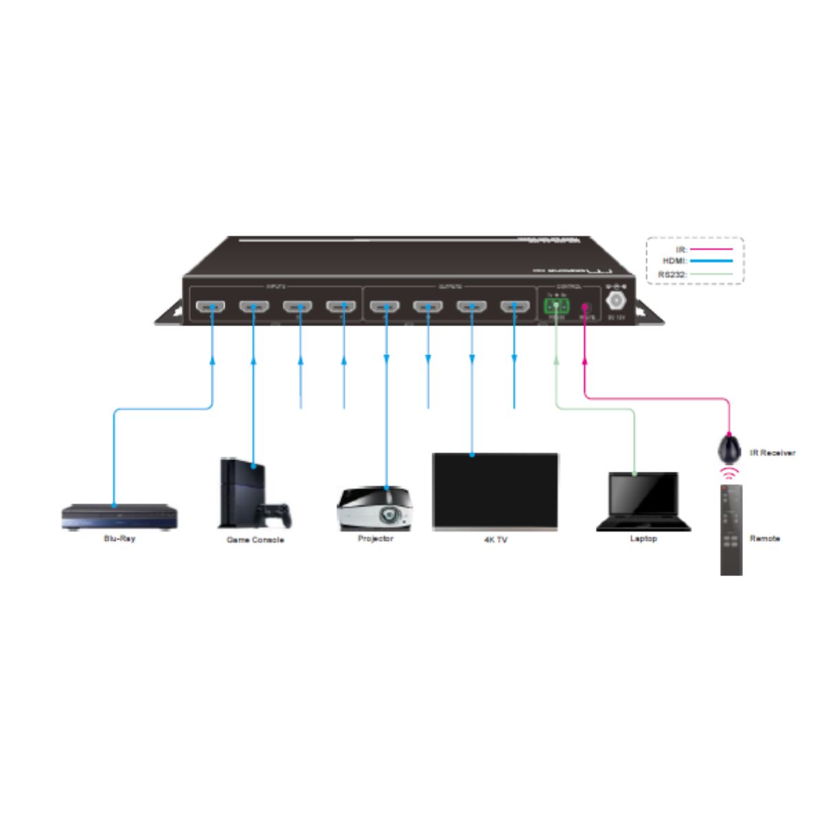 - 8x8 HDMI V2.0 Matrix Switcher.