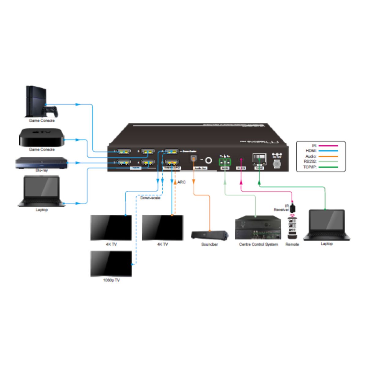 - 4x4 HDMI 2.0 Matrix Switcher.